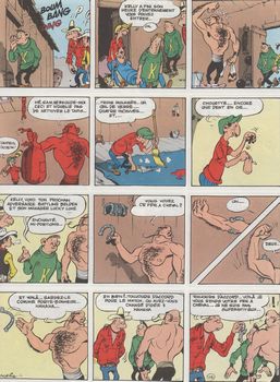 remarques: | album de 47 pages, en trois épisodes: 1/ le retour de Joe la Gâchette - course de chevaux pour Lucky Luke avec les bookmakers de Nugget Gulch >> p. 8 les concurrents >> p. 19 Lucky Luke a le coeur généreux 2/ jours de round-up = rassemblement annuel de bétail 3/ le grand combat Percival Belden, ami de Lucky Luke en combat de boxe contre Killer Kelly >> p. 34 mais pas de publicité pour la boxe >> un album toujours encore peu élaboré, mais prometteur (le graphisme subit de nombreux changements) |