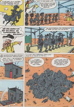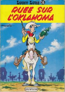remarques: | 46 pages 22.4.1889 date de la ruée pour la colonisation de l'Oklahoma, Lucky Luke est chargé de la surveillance >> p. 8 les concurrent de la ruée >> p. 15 l'adresse au tir de Lucky Luke est à nouveau confirmée, boom économique sur l'Oklahoma, création de Boom city, mais l'ordre n'est maintenu que grâce à Lucky Luke >> p. 24 la construction de la ville Dopey le simplet est élu à la mairie, mais l'Oklahoma n'effectuera pas vraiment son essor économique avant la découverte du pétrole qui devrait profiter d'ailleurs aux peaux-rouges qui auront récupéré leurs terres au départ des colons, Boom city étant redevenue une ville-morte >> album plutôt moyen, thème à nouveau de la ville-champignon et de la ville-morte |