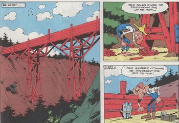 remarques: | 46 pages, premier album marqué Morris+Goscinny sur la couverture d'album et sur les dessins (jusqu'alors seul l'album no 9 était marqué des initials R.G. avec Morris, mais seulement sur les dessins), les albums 10 à 18 ne mentionnant plus du tout les initials R.G. n.b. à ne pas confondre avec RG = Hergé ) et à partir du no 19 les albums seront signés Morris+Goscinny les grandes oreilles des O'Hara contre le gros nez rouge des O'Timmins = les rivaux de Painful Gulch qui se font la guerre pour une affaire de famille, Lucky Luke prend les choses en main et organise une fête pour réconcilier les deux familles, mais cela ne donne rien >> p. 30 Curly MacToole, le plus célèbre aboyeur de Square dance >> p. 31 la square dance avec les paroles - un p'tit tour et a-van-cez, deux p'tits tours et re-ve-nez - un-deux-trois la cavalcade, quat'-cinq-six la promenade - faites le dernier moulinet et retournez où il vous plaît - on s'est très bien a-mu-sés et le quadrille est terminé >> p. 32 un Lucky Luke très en colère et Lucky Luke éteindra la rivalité entre la famille de Pappy O'Hara et celle de Oldtimer O'Timmins en organisant un incendie, les deux rivaux s'entraideront durant ce sinistre >> un très bon récit, scénario original et bon graphisme |