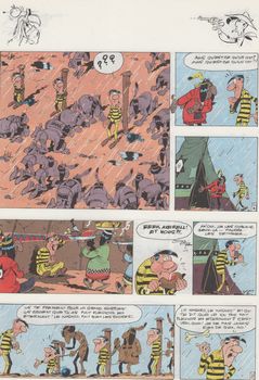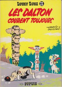remarques: | 46 pages description des Dalton: quatre affreux bandits bêtes, méchants et laids lors d'une amnistie générale, les Dalton sont relâchés alors que leur spécialité dans la prison était de creuser des galeries pour s'évader, ils s'installent à Awful Gulch, de jour ils deviennent honnêtes, mais de nuit ils redeviennent des bandits >> p. 8 le réseau souterrain de Awful Gulch Lucky Luke se lance alors de nouveau à leur poursuite, démêlés avec les apaches, le pénitencier est assiégé par les apaches qui sont devenus pour un temps les alliés des Dalton, Averell ayant réussi à faire tomber la pluie en éternuant >> p. 17 Adada, le cri de guerre des apaches du chef Tichose, toutefois Lucky Luke réussira à démasquer les Dalton en retournant l'attitude des apaches envers les Dalton qui rejoindront tantôt leur pénitencier sans problème grâce aussi à l'action de Rantanplan >> p. 31 la subtilité de Lucky Luke >> album avec les Dalton, récit sans grande surprise à noter: les planches sont maintenant surmontées d'une bande avec les portraits de Lucky Luke et de Jolly Jumper, les vignettes deviennent donc un peu plus petites, ce sera le seul album de ce genre |