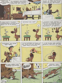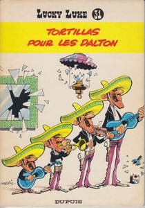 remarques: | 46 pages, dernier album édité chez Dupuis, la suite étant reprise par Dargaud, suite qui allait se révéler sur les prochains 30 albums d'une qualité encore meilleure que la série Dupuis (tant pour le scénario que pour le graphisme) les Dalton font de leur prison leur "home sweet home", mais ils sont transférés dans un autre pénitencier proche de la frontière mexicaine et durant leur transport ils sont enlevés par des bandits mexicains, le gouvernement américain ne peut que se féliciter d'être ainsi débarrassé des Dalton, mais le Mexique ne l'entend pas de cette oreille et demande que les Etats-Unis reprennent les Dalton, sinon il y aura des difficultées diplomatiques >> p. 8 le gouvernement mexicain refuse de garder les Dalton dans leur pays et Washington demande à Lucky Luke de les rapatrier, Rantanplan accompagne Lucky Luke prisonniers du célèbre bandido, Emilio Espuelas, les Dalton lui proposent leurs services comme conseillers pour des hold-up dans les banques mexicaines, toutefois les banques sont rares à cet endroit du Mexique et Espuelas n'est intéressé qu'à enlever de riches personnes pour les libérer contre rançon Lucky Luke à la recherche des Dalton à Xochitecozingo est invité par Don Prieto, un riche ranchero >> p. 14 une tequila rafraîchissante >> p. 29 il faut réveiller Rantanplan qui monte la garde >> p. 31 Rodriguez, le chihuahua bien dressé de Don Prieto qui se mesure à Rantanplan pour tester les Dalton, Espuelas leur ordonne d'enlever Don Prieto et lors d'une fiesta donnée par celui-ci, les Dalton se déguisent en mariachis (= chanteurs mexicains), Lucky Luke apprend le plan des Dalton et en se faisant passer pour Don Prieto recapturent les Dalton après s'être débarrassé d'Emilio Espuelas, les Dalton retrouvent donc leur pénitencier et Rantanplan s'excerce à imiter Rodriguez le chihuahua >> un dernier album Dupuis plutôt bien élaboré, les Dalton à l'heure mexicaine avec la participation de Rantanplan + en dernière page: une planche d'époque sur les moeurs et coutumes du Mexique: les combats de coqs au Chihuahua |