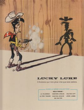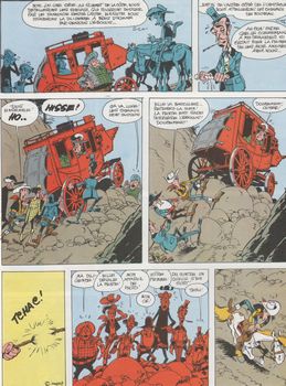 remarques: | 46 pages, dernier titre: Ma Dalton (l'ordre des titres n'est toutefois pas respecté) Lucky Luke est chargé de protéger les diligences de la Wells Fargo, à cet effet il fait la connaissance de Hank Bully surnommé le "fouet" = le meilleur conducteur de diligence de la compagnie, le trajet s'effectue du Colorado à San Francisco via Salt Lake City, Carson City et Sacramento >> p. 4 le coup de fouet de Bully >> p. 7 les passagers de la diligence: Fallings photographe, Stubble prospecteur, Rawler révérend, Scat Thumbs un tricheur professionnel, le couple de banquiers mr and mrs Flimsy ainsi que les 4 chevaux: Noiraud, Apache, Rex et Ouragan rencontre avec les cheyennes et négotiations avec eux pour pouvoir traverser leur territoire, rencontre aussi avec les détrousseurs de diligences dont le desperado Black Bart, un pseudo-fantôme et bandit timide la diligence arrivera à bon port après bien des démêlés dont l'arrestation du traître-rénégat-révérend Rawler infiltré parmi les passagers de la diligence >> p. 30 le pianiste de Fort Bridger >> p. 31 le barman de Fort Bridger (alias Alfred Hitchcock) >> un album pas trop mal élaboré malgré que le trajet tire parfois en longueur et ressemble beaucoup au film "stagecoach", mais avec un très bon graphisme et coloriage en dernière page: le bandit-poète Black Bart (Charles Bolton) en figure d'époque Information Charles E. Boles (1829-1888), also known as Black Bart, was an English-born American outlaw noted for the poetic messages he left behind after two of his robberies, often called Charley by his friends, he was also known as Charles, he was considered as a gentleman bandit with a reputation for style and sophistication, he was one of the most notorious stagecoach robbers to operate in and around Northern California and Southern Oregon during the 1870s and 1880s |