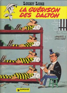 remarques: | 46 pages, dernier titre: la guérison des Dalton le professeur Otto von Himbeergeist, psychologue, explique au congrès américain ses théories qui veulent démontrer que les criminels sont des malades que l'on peut guérir en analysant les points importants de leur petite enfance et le gouvernement lui accorde la possibilité de faire une expérience Lucky Luke est chargé d'assister le prof Himbeergeist qui veut pratiquer sa théorie sur les Dalton >> p. 8 la présentation des prisonniers du pénitencier >> p. 14 la clinique de Himbeergeist >> p. 19 le plat national de Himbeergeist: la choucroute garnie >> p. 24 Ran Tan Plan qui a une crise d'intelligence Himbeergeist s'efforce d'appliquer son traitement mais malgré son pouvoir de persuasion, les Dalton ne changent pas et c'est Himbeergeist qui devient un criminel >> p. 40 Lucky Luke qui utilise les méthodes de Himbeergeist sur les Dalton (avec quelque succès sur Averell) >> un récit avec une certaine originalité et bien développé avec toujours un bon graphisme et coloriage, un album qui finit avec un hommage à Freud (>> p. 46) |