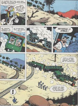 remarques: | 46 pages, dernier titre: le magot des Dalton n.b. dernier album sur la couverture de laquelle apparaît la tête de Lucky Luke avec encore un mégot dans la bouche les Dalton toujours en quête d'évasion finissent par s'évader à la recherche du butin inexistant du faux-monnayeur Buttercup >> p. 3 le célèbre pénitencier de Yuma en Arizona où sont enfermés les Dalton >> p. 7 la méthode douce du directeur du pénitencier contre les évasions >> p. 24 des fils télégraphiques barbelés >> p. 25 le progrès s'installe dans l'Ouest avec les mitrailleuses Gatling à Red Rock Junction pour une fois, les Dalton ont de la peine à se faire emprisonner >> p. 28 un juge très débonnaire qui qualifie les Dalton de petits polissons et le mystérieux pénitencier de Red Rock Junction qui est un endroit de débauche pour desperados où ceux-ci peuvent dépenser le fruit de leurs rapines, le tout financé par des politiciens véreux finalement Lucky Luke découvrira le pot aux roses et avec l'aide de la cavalerie terminera l'épopée du pénitencier de Red Rock Junction n.b. c'est bien la première fois que les Dalton cherchent à entrer dans un pénitencier plutôt que d'en sortir (invasion au lieu d'évasion) >> le graphisme est toujours de bonne qualité et le scénario acceptable bien que le nouveau scénariste donne en quelque sorte une image plus intellectuelle de Lucky Luke alors que les Dalton deviennent plus brutaux et que Jolly Jumper trouve que Lucky Luke devrait changer son répertoire pour la chanson de dernière page, les temps changent aussi pour Lucky Luke |