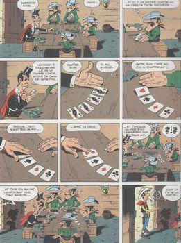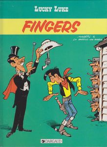 remarques: | 46 pages, dernier titre: Fingers, premier album avec les titres dans l'ordre au 4ème plat (22ème album de la série Dargaud) Fingers, le roi de la magie et de la prestidigitation est arrêté et mené au pénitencier où les Dalton purgent leur peine, mais peu après les Dalton s'évadent avec l'aide de Fingers et Lucky Luke est chargé de les retrouver >> p. 11 la fameuse partie de poker finalement les Dalton seront remis en prison, mais Fingers est acquitté et continue sa tournée avec Lucky Luke qui doit surveiller les mains baladeuses de Fingers >> p. 32-34 le procès de Fingers >> p. 41 avec les conseils de Fingers, Lucky Luke entame un duel entre lui et le sorcier des sioux, Lucky Luke devient également un excellent prestidigitateur >> un scénario de Van Banda plutôt médiocre, malgré les prestations de Fingers, toutefois toujours avec un assez bon graphisme à noter: premier récit où Lucky Luke abandonne son mégot pour une petite brindille d'herbe |