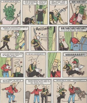 remarques: | collection Rijperman, dos toilé, tirage de luxe, no 128, 62 pages, dédicacé par Tibet, édition original Lombard = 1957 information sur la série Chick Bill: voir >> tome 4 Kid Ordinn le rebelle en patrouille aux environs de Wood City, la bande des quatre rencontre un cheval sans cavalier, après une première enquête, il semble qu'une bande de malfaiteurs sous le nom de Ko-Klox-Klan sème la terreur dans la région, notamment à Big Horse Town où la population est terrorisée Chick Bill est fait prisonnier par le Ko-Klox-Klan, mais il est délivré par un mystérieux inconnu qui s'avère être incognito le shérif de Big Horse Town >> p. 27 la disparition mystérieuse du chef des bandits >> p. 32/35 la grande partie de rire entre Dog Bull et Kid Ordinn = les kitordinneries >> p. 40 le grand conseil du Ko-Klox-Klan finalement l'organisation sera démantelée et leurs chefs arrêtés, mais par une drôle de coïncidence, Dog Bull et Kid Ordinn seront aussi arrêtés comme comme membres du Ko-Klox-Klan et condamnés à être pendus, ils seront toutefois sauvés in extremis >> un graphisme convenable, mais un scénario plutôt faible |