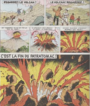 remarques: | réédition de 1975, 62 pages, scénario de Greg information sur la série Chick Bill: voir >> tome 4 Kid Ordinn le rebelle visite à Wood City de Aloysus Thimotée Scorie, professeur de sismo-spéléo-vulcanologie qui a l'autorisation du gouvernement pour emmener la bande des quatre en Amérique du sud afin d'explorer le volcan Patratomac nos amis découvriront après plusieurs explorations un réseau clandestin dissimulé dans les entrailles du volcan pour la contrebande de tabac, le volcan étant situé sur la frontière entre deux états sud-américains et lors de l'éruption du volcan, tout le monde s'efforcera de quitter la zone dangereuse et par la suite, la bande des contrebandiers sera démantelée >> p. 10 la boisson locale "la muerte subita" >> p. 30 vous en fûtes tout confondûtes répond Kid Ordinn >> p. 49 la vraie éruption du Patratomac ressemblant à un gigantesque cigare >> un album de qualité moyenne avec une succession de gags à la sauce Kid Ordinn, et en plus des kidordinneries, il y a maintenant les enrhumeneries et notamment les excentricités de Kid Ordinn durant l'exploration des entrailles du volcan (pages 37 à 40) et qui réussit à faire des toasts en utilisant la chaleur du volcan (p. 58) annexes - couverture et 4ème plat de l'album - page de garde - extrait de l'album n.b. la série Chick Bill comprend env. 70 albums, seuls quelques albums sont collectionnés ici à titre d'éxemplaire représentatif de la série, en fait 70 albums publiés de 1973 à 2010, aux éditions du Lombard, le dernier album étant titré: qui veut gagner des filons |