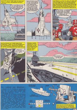 remarques: | album broché, édition originale belge Buck Danny et ses amis confrontés à des vols d'essai pour un prototype delta supersonique en V.T.O.L. (vertical take-off and landing) sur le plus grand porte-avion du monde: le Forrestal (en 1959), le tout chappauté d'une histoire de chantage sur l'un des pilotes du prototype qui disparait subitementavec son engin >> un scenario très technique et toujours un bon graphisme de Hubinon avec de jolies couleurs |