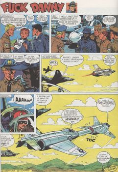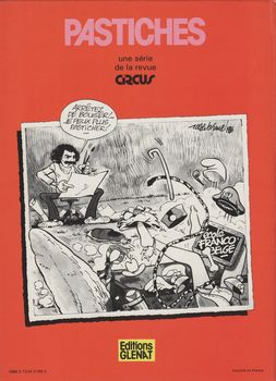 remarques: | premier album pastiche (imitation ou évocation) dédié aux dessinateurs et scénaristes et les grands héros de la bande dessinée dans des gags iconoclastes prépubliés dans Circus à partir de 1979 dans cet album: - Gafton Lagasse (by Franquin), - la marque rose avec Clake et Mortamer (by Jacobs)**, - Kuly Kule (by Morris), - Tandur et Laverguy (by Jijé), - Chitt Bill (by Tibet), - Michel Braillant (by Graton), - Achille Taton (by Greg), - Ziznogod (by Tabary), - Fuck Danny (by Hubinon/Charlier)**, - Axile (by Martin)**, - les Troumpfs (by Peyo), - Venerian et Laubepine (by Mézières), - Aspénix et Obsédix (by Uderzo), - Boutte et Bitt (by Roba), - Syphilline et Gonophylle (by Macherot), - la papouille des Costars (by Mitacq), - Zizi Bricolin (by Lacroix), - Spinou et Bandasio (by Franquin), - les Pieds Nickés (by Pellos), - Haran (by Chéret), - Oncle Bens et les Centaures (by Oncle Paul), - Vif et Tendu (by Will), - Bullberrey (by Giraud/Charlier), - Tientien et Masock au château de Monsoulard ainsi qu'en Bordélie et en Syphilie (by Hergé)** >> le premier opus de la série et probablement le meilleur, des pastiches sur une idée originale mais surtout des illustrations bien reproduites par Brunel (** = les meilleurs épisodes) |