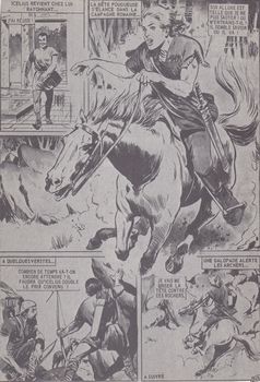 remarques: | cahier no 46, 3ème trimestre 1980 1) entretien avec Chéret by Henri Filippini et Jean Leturgie Chéret né en 1937, prédilection pour Hogarth (Tarzan), Pellos (Durga Rani) et pour Giraud, travaille d'abord aux éditions Fleurus (Coeurs Vaillants), puis pour les éditions Mondiales (Mireille) où il dessine aussi Rock l'Invincible qu'il reprend de Di Marco, il reprend aussi aux éditions Vaillant la série Bob Mallard d'Hidalgo; Chéret créé la série de Monica, hôtesse de l'air dans la revue Mireille en 1963, puis inspiré peut'être par Tounga d'Aidans (1964), Chéret créé en 1968 Rahan dans Pif Gadget avec Lecureux comme scénariste >> p. 12 la technique du lavis Chéret sera en concurrence avec Bastard pour le personnage de Rahan et Chéret est encore en procès avec les éditions Vaillant pour la propriété du personnage de Rahan discussions sur la propriété des personnages dans la bande dessinée (objet du procès avec les éditions Vaillant mais en général un personnage de BD appartient plutôt au dessinateur qu'au scénariste), en attendant le personnage de Rahan a été repris pour le compte des éditions Vaillant (on est en 1980) par le dessinateur espagnol Romero (dessinateur de Axa et de Modesty Blaise) mais pour Chéret c'est du véritable plagiat >> voir page 18 Chéret a commencé récemment dans le Journal Tintin la série de Domino avec Greg et Van Hamme ainsi que Michel Brazier avec Charlier comme scénariste 2) Rahan a rencontré Tounga by Paul Hermann >> p. 27 différence entre Tounga et Rahan Tounga est peut'être un personnage plus préhistorique que Rahan qui est plus genre Tarzan, le cri de Rahan: Raaa-haaa (ressemblant à celui de Tarzan); Rahan reste aussi plus solitaire (tout comme Tarzan) alors que Tounga s'entoure de plusieurs compagnons, différence aussi pour l'habillement; les deux richesses de Rahan: son coutelas et son collier de griffes alors que Tounga a un pagne plus large et utilise plutôt une massue 3) la justice de Domino by Jean Leturgie récit humoristique de cape et d'épée avec Domino (le nouvel d'Artagnan) parrainé par le chanoine Armand Labourresque au prise dans les derniers récits avec un méchant surnommé Justicias 4) pour quelques dents de machaidorus en plus (= étude sur le graphisme de Rahan) by Antoine Roux - étude dramatique par l'image (exemple du coutelas perdu) et les effets de plongée et de contre-plongée, différence avec le graphisme de Tarzan par Foster (celui de Rahan se référant plus au graphisme de Hogarth) - technique du lavis pour Vidocq (1967) et le général du diable dans "tout le western" (1966) 5) bibliographie dans Mireille: - Rock l'Invincible, repris de Di Marco (1962/1963) - Monica, hôtesse de l'air (1962/1963) - filles de France (1963) dans Coeurs Vaillants: - récits complets (1959-1966) dont l'héroïque dr Larrey en p. 8 - les aventures de Karl (1966) dans Vaillant: - Bob Mallard (1962-1966) - récits complets (1964-1969) - Rahan (1969-1980) dans Spirou: Michel Brazier (1979) dans Tintin: - Domino (1977-1978) et nombreuses couvertures du Journal ainsi que: - Vidocq (1966) avec la technique du lavis - Gavroche (1979) - Anaël aux yeux d'or (1979) - le dernier des Mohegans - les filles du soleil (en partie) - Homo Sapiens - Ly-Noock - petit Rahan - Proteo (en partie) - Yannick Noah |