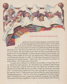 remarques: | un conte de Perrault illustré par Calvo il était une fois un bûcheron et une bûcheronne qui avaient sept enfants tous garçons, le plus jeune n'était pas plus gros que le poucet et fut surnommé le petit poucet >> p. 6 les frères du petit poucet extrait du texte: "le bûcheron menaça de battre sa femme si elle ne se taisait, ce n'est pas que le bûcheron ne fût peut'être encore plus fâché que sa femme, mais c'est qu'elle lui rompait la tête et qu'il était de l'humeur de beaucoup d'autres gens qui aiment fort les femmes qui disent bien, mais qui trouvent très importunes celles qui ont toujours bien dit" (n.b. si c'est de La Fontaine, c'est bien écoulé!) >> p. 8/9 la maison de l'ogre qui sent la chair fraîche >> p. 10 les sept fillettes de l'ogre avec couronne >> p. 11 les sept petits garçons avec bonnet et l'échange des couronnes avec les bonnets les fins diffèrent sur les exploits du petit poucet, mais en tout cas il réussira à s'emparer des bottes de sept lieux et à gagner beaucoup d'argent >> petit album sans grande prétention ni pour le texte (sans surprise), ni pour les illustrations (charmantes mais pas extraordinaires), un album de collection assez rare, mais qui ne mérite peut'être pas sa côte |