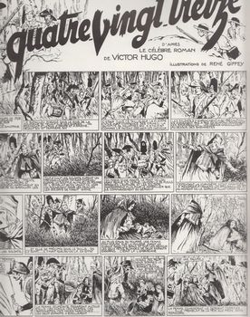 remarques: | une réédition de Quatre-Vingt-Treize publiée par les éditions Transit à Toulouse (1979), 29 planches en N&B, sans changement avec l'édition originale brochée de 1950, mais sans l'épisode avec Buffalo Bill >> résumé voir l'album des éditions Mondiales (1950) annexes - couverture - détail de vignette - page extraite de l'album |