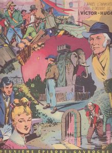 remarques: | les misérables, tome 2: Gavroche, broché, N&B, 50 pages - 1823, le calvaire de Cosette chez les Thenardier, 9 mois plus tard réapparition de Jean Valjean >> p. 9 Cosette, une espèce d'enfant imbécile - après bien des tractations, Jean Valjean récupère Cosette et se réfugie dans une mansarde à Paris, mais déjà l'inspecteur Javert est sur ses traces >> p. 25 le mendiant qui fait l'aumône, l'horrible redingote qui vaut plusieurs millions était toute cousue de billets de banque et comment Javert retrouva la piste de Jean Valjean - Jean Valjean trouve refuge auprès du père Fauchelevent, devenu jardinier au couvent du Petit Picpus, - la ruse et une heureuse coincidence permettent à Jean Valjean de s'établir au couvent et à confier l'éducation de Cosette aux bonnes soeurs de Petit Picpus >> p. 28 la mort et la sortie de mère Crucifixion et "pourvu que rien ne soit dérangé" dixit Fauchelevent - mais malgré un bon plan, l'imprévu est quand même de la partie et Jean Valjean devient Ultime Fauchelevent, frère du père Fauchelevent - en 1817, l'histoire et la carrière fulgurante du baron-colonel Pontmercy, chevalier de la légion d'honneur >> p. 33 sire, je vous remercie pour ma veuve! - après l'ère napoléonienne, Pontmercy avait épousé la fille du riche bourgeois Gille-Normand qui n'avait jamais accepté ce mariage, peu après la jeune épouse meurt en laissant en bas âge un fils nommé Marius - comme Pontmercy n'avait plus les moyens d'élever correctement son fils, il dût le remettre à son grand-père maternel pour son éducation - on cacha alors toujours à Marius la carrière de son père qui vivait sobrement dans l'ombre de Napoléon - plus tard, Marius retrouva son père qui lui avait laissé un testament mentionnant faussement la bonne action de Thenardier - Marius découvre la vérité sur son père grâce à Monsieur Mabeuf, voisin de Pontmercy - indigné, Marius romp avec son grand-père, il quitte sa maison et s'engage dans la société des amis de l'ABC dirigée par Enjolras et Courfeyrac - Marius recherche Thénardier et trouve Cosette, mais il découvre aussi qu'il est le voisin de palier d'une famille de brigands dont le chef est Thénardier recommandé par son père >> p. 41 les préparatifs de Thénardier pour la visite du philanthrope, Monsieur Leblanc, père de Cosette et si celui-ci ne s'exécute pas, il sera exécuté - grâce à Marius, l'embuscade échoue, tout ce joli monde est arrêté par la police de Javert mais M. Leblanc, alias Jean Valjean réussit à disparaître >> p. 50 le mot de Javert: "diable, ce devait être le meilleur" - apparition de Gavroche, fils de Thénardier et gamin de Paris >> à nouveau un superbe album avec un bon texte dont deux épisodes particulièrement intéressants: - le calvaire de Cosette et la fuite de Valjean pour Petit Picpus annexes - 1er et 4ème plat de l'album |