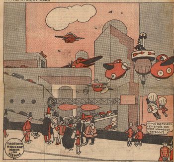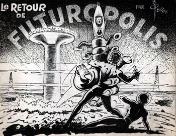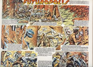 remarques: | album EO cartonné à l'italienne, couleur, en quadrichromie, 56 planches 1/ préface de Jacques Glénat qui est fier de présenter son album "Futuropolis" constitué à partir de la superbe collection de Pierre Pascal de Bordeaux, un album de 56 pages en couleur au dimension de 26 x 42 cm, Futuropolis a paru dans Junior du no 54 (1937) au no 110 (1938) >> voir aussi l'article consacré à Futuropolis dans Circus no 9 2/ avant-propos de Pierre Pascal - l'histoire de Futuropolis et du périodique Junior avec une copie du no 1 première années du 2.4.1936, - biographie de René Pellos, élevé en Suisse, collabore en premier à Gugusse, magazine suisse, puis départ pour Paris ou Pellos dessine pour Match et l'Intransigeant (1930) travaille ensuite pour Offenstadt (l'Epatant, le Petit Illustré, l'Intrépide, Fillette, Cri Cri), mais pour concurrencer la BD américaine, Pellos et Offenstadt publient Junior avec toutefois quelques bandes de Tarzan et de Terry et les pirates mais aussi avec des bandes de dessinateurs français dont surtout Futuropolis par Pellos, texte de Thévenin alias Martial Cendres >> p. 6 et 7 copie d'une planche chaque de J.-J. Ardent, le bûcheron athlétique et de Compagnon Michel, l'alpiniste - dans Futuropolis, Pellos supprima les vignettes traditionnelles pour des figures géométriques et pressé par son travail, on constatera des planches plus travaillées que d'autres >> p. 8 et 9 copie de planche de Kid Pêche le boxeur ainsi que des Pieds Nickelés, - à l'aurore des jours humains, la guerre du feu et Durga Rani, Futuropolis est une oeuvre unique avec le thème du premier couple humain Rao et Iaona semblable à Adam et Eve 3/ Futuropolis - la cité des temps futurs, centrale automatisée et artificielle, cité du bien-être matériel, enfouie dans la terre dont les travaux manuels sont effectués par des machines intelligentes, cité peuplée par une race fragile (= descendants d'anciens hindous), délicate, sans volonté et soumise à la loi des Grands Maîtres = savants dégénérés et maniaques dotés d'une loi rigide et cruelle, les faibles étant éliminés par euthanasie (sacrifice à la mode carthaginoise >> p. 5) - le monde dans lequel se trouve Futuropolis semble ne plus être habitable sur sa surface car l'air ne serait plus respirable mais récemment il y a eu des changements et la vie renait sur la planète >> p. 1 une autre race vit dans les profondeurs de la planète, c'est le peuple des abîmes = genre de larves à forme humaine, - la force principale des savants de Futuropolis est constituée d'ondes ou fluides magnétiques qui contrôlent une armée de robots hétérogènes appelée l'armée de fer, ces robots détectent maintenant une nouvelle vie sur la planète dont une nouvelle race: les Nouveaux-Hommes qui ont survécu dans un environnement hostile et qui commencent à se développer - deux champions de la race des Maîtres: Rao l'homme fort, mais sentimental et Maia, la femme fière et implacable, sont envoyés en exploration, ils deviendront peu après des adversaires impitoyables, Rao va se révolter contre la domination cruelle et inhumaine des Maîtres alors que Maia reste inéluctablement loyale à la loi des Maîtres, - c'est la nature qui se révolte contre la science, machines, robots et scientifistes qui contrôlent la terre et le feu contre les hommes libres, les animaux et les éléments naturels de l'air et de l'eau - Rao et Maia, amis d'enfance, von s'affronter en une lutte acharnée alors que Rao aimera la belle sauvage Iaona qui finalement tuera Maia pour l'amour de Rao, mais celui-ci malgré la haine que lui livre Maia, ne voudra pas lui-même éliminer Maia, à la fin Rao et Iaona recommenceront l'histoire d'Adam et d'Eve l'action se déroule en trois épisodes: a) la recherche des Nouveaux-Hommes - sur leur trajet, Rao et Maia sont agressés par le peuple des abîmes (descendants dégénérés d'une race blanche, en fait des mutants) qui s'emparent de Maia, Rao essayera de la délivrer, il y réussira, mais sera ensuite pris à parti par un ours géant et sera abandonné par Maia qui a reçu l'ordre des Maîtres à continuer sa mission sans plus s'occuper de Rao qui a désobéi >> p. 7 à 11 le combat contre le peuple des abîmes >> p. 14 le combat contre l'ours géant - après avoir échappé à l'ours, Rao devra encore se battre contre des hordes de loups affamés et ne devra sa vie qu'à l'intervention de la belle sauvage Iaona et de ses amis, les Nouveaux-Hommes >> p. 20 Rao étendu sur le dos? - Rao renie sa race et se révolte alors définitivement contre les Grands Maîtres de Futuropolis après avoir lutté lui-même pour sa survie sans l'aide des savants de Futuropolis b) alliance avec les Nouveaux-Hommes, combat contre Maia et ses machines de fer; Rao devient lui aussi un Nouvel-Homme et prend le commandement de la tribu, car c'est lui qui sait le mieux comment combattre Maia et l'armée de fer qui a comme mission maintenant d'asservir les Nouveaux-Hommes n.b. les machines sont dirigés par fluide magnétique contenu dans une espèce de torche que Maia utilise comme bâton de commandement, cette torche a aussi le pouvoir d'influençer les êtres vivants, - Rao a pu en fabriquer une copie rudimentaire qui n'a toutefois pas la puissance de celle de Maia - malgré tout la torche de Rao peut domestiquer les animaux sauvages et quand les Nouveaux-Hommes sont sur le point de succomber aux robots de Maia, Rao fait appel aux êtres de la forêt dont les gorilles géants et des éléphants encore plus grands que des mammouths >> p. 29 le combat entre robots et gorilles - la victoire de Rao est complète et Maia est faite prisonnière, mais Rao est trahi par Aigle Rouge, le sorcier de la tribu, jaloux de l'autorité de Rao, celui-ci fait alliance avec Maia et la laisse s'échapper pour chercher des renforts >> p. 34 la vie est toujours supérieure à la mécanique! - Rao part à la poursuite de Maia qui