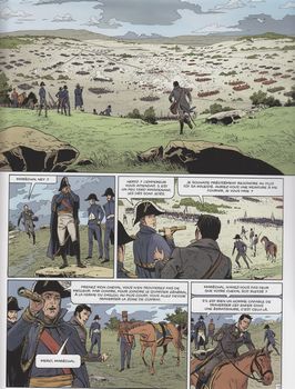 remarques: | André Hertz aurait été l'espion de Napoleon et ses carnets remettent en question l'histoire sur Napoleon >> p. 4 la Tour de Londres, juin 1815 Hertz, agent français, genre 007, s'empare dans la plus pure tradition de la Marque Jaune d'un documents secret mais explosif détenu par les anglais sur Napoleon >> p. 8 l'abeille d'or = la marque du plus redoutable espion de Napoleon, l'ombre de l'aigle en France, Napoleon se prépare à la bataille de Waterloo et Hertz s'efforçe de lui transmettre le document avant la bataille mais Hertz n'arrivera pas à temps >> p. 12 le Royal Corse au lieu du Royal Horse mais c'est effectivement le Royal Corse, composé de traîtres corses à Napoleon au service de l'Angleterre n.b. le régiment Royal-Corse est un régiment d’infanterie du Royaume de France créé en 1739, ici il serait un régiment au service de l'Angleterre >> p. 16 le destin de Napoleon semble sombrer dans la boue de Waterloo et ce soir la France sera veuve finalement Hertz réussit à rejoindre l'empereur qui est blessé par une balle mais Ali, son fidèle serviteur, le guérit grâce à une formule magique égyptienne Napoleon a perdu la bataille mais il ne doit pas mourir afin d'accomplir son destin le fameux document est confié à un jeune membre franc-maçon pour le mettre en sécurité jusqu'à ce qu'il aura son importance Hertz prépare maintenant la fuite de l'empereur vers l'Amérique, Napoleon embarque sur le vaisseau "la Méduse" mais celui-ci est arraisonné par la marine anglaise et Napoleon est déporté sur l'île de St-Hélène, André Hertz parvient toutefois à s'échapper alors que son frère Louis reste auprès de l'empereur >> p. 27 selon Convard, le gardien de Napoleon à St-Hélène, lord Hudson Lowe, surnommé l'épouvantail par Napoleon, humiliait celui-ci parce que Napoleon avait refusé de combattre à Waterloo le régiment Royal Corse commandé par Lowe et il ne pardonnait pas à Napoleon l'humiliation que lui avait infligé Napoleon en lui refusant le combat Louis Hertz propose à Napoleon un plan d'évasion mais celui-ci échoue >> p. 32 Cristadciu = le juron de Napoleon la surveillance se resserre encore et Lowe reçoit de nouvelles directives de Londres: retrouver le fameux document ou éliminer Napoleon, Lowe forçe alors Louis Hertz, l'ami le plus intime de Napoleon à St-Hélène, contre la vie de ses enfants, à administrer à Napoleon dans ses aliments un poison qui le tuera lentement Napoleon, malade, reçoit un médecin corse de la part de sa mère qui ressemble à Napoleon et qui va préparer un nouveau plan d'évasion: prendre la place de Napoleon qui lui se fera passer pour le docteur corse le faux Napoleon meurt et le vrai Napoleon rejoint sur la plage André Hertz qui l'attend avec un sous-marin!! la suite dans le prochain album: la 3ème mort de l'empereur >> un récit déjà plus du genre Convard bien que cette histoire n'ait plus rien à voir avec le triangle secret Convard s'amuse avec l'histoire, c'est un genre d'histoire secrète, un peu fantasmagorique mais assez bien imaginée >> p. 56 Napoleon serait maintenant sauvé par l'invention qu'il avait refusé d'envisager (>> voir Fulton) et on ne saura pas encore le contenu du fameux document qui aurait pu changer la façe du monde!! |