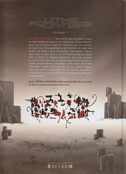 remarques: | Leo se lance maintenant dans le western futuriste, lamentable! Erechim sur la planète Tau Ceti 5, la plus récente colonie terrienne dans l'espace et ultime frontière avant les territoires inexplorées, c'est l'Ouest dans l'espace! arrivée de Jane Jones et de John Jones de Jones+Jones Sécurité, Jane est une jeune femme et son frère John, un cul-de-jatte sur fauteuil hyper-mobile électrique, ils ont reçu la charge de rétablir l'ordre dans le bled d'Erechim après avoir remis à l'ordre au bar du patelin une bande d'imbéciles (genre d'outlaws mais imbéciles dans le texte!), le duo doit maintenant s'attaquer à un monstre qui sème la terreur dans les territoires inexplorées >> p. 17 la capsule Hansen qui injectée par pistolet dans un corps paralyse l'adversaire et le maintient sous contrôle, et si l'on cherche à l'extraire, la capsule explose >> p. 23 mascotte et chien de garde au ranch des Maubert: Hercule, un scarabé volant géant >> p. 32/33 le combat avec le monstre qui porte une jambe artificielle et des implants mécaniques par la suite, Jane est nommée shérif d'Erechim et John devient son adjoint Jane aura encore affaire à Burton, un riche propriétaire foncier qui cherche à s'approprier les terres de ses voisins ainsi qu'à un deuxième monstre de structure métallique externe muni de prothèses sophistiquées de plus, Jane devra aussi affronter le père Sandero accompagné de ses six fils, des gens très méchants selon le jeune fils Maubert mais curieusement le père Sandero finira par s'entendre favorablement avec Jane la shérif, il est vrai que le père Sandero a encore quelques fils à marier et trouve que Jane ferait une bonne belle-fille >> p. 48 le mot de la fin par Jane: "ha ha ha très drôle" mais le plus drôle, c'est qu'une suite est annoncée à ce début de cycle catastrophique >> ce n'est même plus drôle, c'est grotesque et au 4ème plat de l'album, il est mentionné que cette nouvelle histoire se dévore comme un western futuriste, ce qui est sûr c'est qu'en le dévorant on attrape de suite une grosse indigestion, un récit quelque peu sur le thème de l'orthopédie et de la paraplégie mais qui ne fait pas honneur à ses auteurs, le scénario est nul, un texte pauvre et simpliste et même le graphisme laisse à désirer et bien sûr la suite de cette ultime série de Leo ne sera plus collectionnée ici, toutefois malgré la déplorable qualité de cette série, il y aura encore trois autres épisodes: épisode 2 (2015), épisode 3 (2016) et épisode 4 (2017) Information sur Tau Ceti 5, planète ressemblant fortement à la Terre, le village d'Erechim est situé à l'ultime frontière, là où la civilisation prend fin, mais la terre promise devient vite le pire cauchemar de ses habitants : non seulement un propriétaire terrien tout-puissant les terrorise, mais un mystérieux monstre a aussi fait son apparition, deux mercenaires, Jane et John, sont engagés pour rétablir la paix, mais ils s'attendaient à tout sauf à ça |