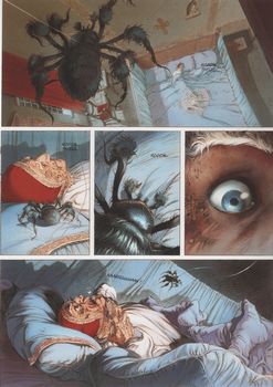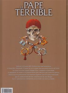 remarques: | 1503 mort d'Alexandre VI Borgia, Rome redevient un lieu de débauche; accompagné de son mignon Aldosi, della Rovere va tout mettre en oeuvre pour succéder à Rodrigo Borgia et il raconte à Aldosi comment il a réussi à empoisonner Alexandre VI en utilisant un flacon à vin à deux compartiments, l'un rempli de vin empoisonné, l'autre rempli de vin propre, puis Rovere commence à soudoyer les cardinaux-électeurs du Concave, il réussit à faire élire Todeschini de Sienne, un vieux cardinal, sous le nom de Pie III et en compensation, Rovere reçoit en héritage la grande fortune de Todeschini à sa mort qui ne tarde pas à arriver grâce à della Rovere >> p. 13 le palais bien protégé du cardinal Todeschini >> p. 29 l'assassinat de Pie III par Lilith interposée (= une araignée très venimeuse) dès lors, Rovere grâce à sa richesse héritée ne rencontre plus de grande difficultée pour se faire élire pape sous le nom de Jules II; sa première tâche sera de corriger un neveu tricheur en utilisant la méthode Borgia dans laquelle népotisme, stupre et poison sont plus efficaces que les prières il distribue à sa famille des charges importantes produisant de bons revenus et pour asseoir son autorité, Jules II, aidé du prince Machiavel, se débarrasse aussi de César Borgia en le faisant assassiner par les sbires du roi de Navarre où César s'était réfugié >> p. 44 le bordel de Madame Imperia fréquenté assidûment par Machiavel Jules II est maintenant bien consolidé sur le trône papal, toutes les conditions sont réunies pour que Jules II fasse de l'état pontifical une grande puissance >> pas très convaincant le scénario de ce premier volume, le récit étant quelque peu la répétition du dernier volume de la série Borgia, de plus à nouveau une critique acerbe vis à vis de l'Eglise, heureusement le graphisme de Theo tient la route, mais les papes se suivent et se ressemblent Information A) Theo sera aussi le dessinateur des derniers albums de Murena et de la série le trône d'Argile B) Jules II (1443-1513) Giuliano Della Rovere, évêque de Carpentras, puis archevêque d'Avignon, est élu pour devenir le 216e pape de l’Église en november 1503 sous le nom de Jules II préoccupé de l'équilibre des puissances en Italie, cet ambitieux chef d'État, plus séculier que religieux, élimine tour à tour César Borgia, les Vénitiens puis les Français avec le concours des Espagnols de la Romagne et du Milanais, accroissant simultanément le territoire des États pontificaux sur le plan artistique on lui doit un mécénat qui a donné la reconstruction de la basilique Saint-Pierre, l'agrandissement du Vatican par Bramante, la décoration des nouveaux appartements par Raphaël, l'édification d'un tombeau pour lui-même et la décoration de la chapelle Sixtine par Michel-Ange |