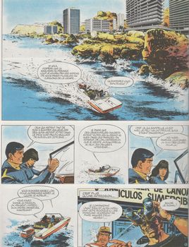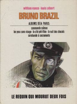 remarques: | réédition de l'album Lombard 1969 broché Jeune Europe 59, mais cet album est la première édition cartonnée un criminel notoire Kurt Schellenburg, surnommé le loup de Nuremberg (un ancien nazi) est victime d'un accident de la route en Amérique du Sud et amené dans un hôpital où il est reconnu l'agent Bruno Brazil (genre 007, mais aux cheveux prématurément blanchis) est chargé de le récupérer, note: Schellenberg fut un haut fonctionnaire nazi qui prit la fuite avec un U-Boot vers un pays sud-américain, c e sous-marin convoyait le trésor nazi de 15 milliards de dollars, il n'arriva jamais à destination et s'échoua avec le trésor près des côtes du Caraguay Brazil se rend au Caraguay avec son co-équipier Puddle, mais dès leur arrivée ils sont déjà repérés par les services caraguayens >> p. 10 déjà une montre-bracelet-téléphone >> p. 11 l'agent Brazil est bien mieux logé que son co-équipier Puddle Hawks, Hawks soi-disant éliminé, c'est la charmante Vera des Services K qui le remplace >> p. 17 Bruno Brazil fume beaucoup et boit du coca et dans cette affaire qui sent la trahison, Brazil décide de tendre un piège à ses adversaires >> p. 21 bataille sous-marine pour Brazil et sa co-équipière >> p. 25 Brazil est secouru par Ricardo, un peintre-ermite, agent des Services K, nom de code: chimpanzé barbouilleur qui loge dans une jolie petite villa au bord de la mer et qui possède un fourgon 2 CV, mais Vera est faite prisonnière >> p. 27 la tactique de Brazil: se faire remarquer pour passer inaperçu! chasse à l'homme, mais Brazil n'est pas un tueur, il utilise des pistolets à gaz qui endort seulement et dans leur fuite, Brazil et Puddle (ressuscité) tombent sur Schellenburg qui devient leur prisonnier, ils seront épaulés avec le vieux tacot "Pétulante" du restaurateur Oscar Caucci, 2ème contact du services K >> p. 39 les poursuivants sont semés grâce à un garage secret et à une échelle avec échelons escamotables et avant d'être récupéré par le groupe d'intervention du colonel L des services K, Brazil apprend par Schellenberg que le trésor nazi n'existait pas, tout avait été inventé par Schellenberg (du bluff!) pour trouver refuge auprès du gouvernement caraguayen >> série parue dans Tintin belge en 1967, genre de James Bond au scénario plutôt faible de Louis Albert (= Greg) qui multiplie les gags techniques mêlés d'humour pas trop relevé et les débuts de Vance comme dessinateur seul album de la série collectionné ici comme album représentatif de la série, il y aura encore 8 albums de 1969 à 1977, dernier titre: quitte ou double pour Alak 6" + un album "dossier Bruno Brazil" la même année ainsi qu'un curieux album en 1995 intitulé "la fin??..." scénario de Greg, mais récit lui non fini? |