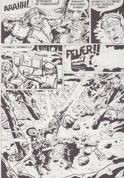 remarques: | livre de 61 pages, images en N&B, dédicacé par l'auteur 1916, front ouest, à l’aube du 21 février, un ouragan de fer et de feu s’abat sur les lignes françaises du front de Meuse entre Avocourt et Damloup à Verdun, c'est le début de l’un des plus effroyables carnages de la Grande Guerre pendant plus de 10 mois, sur un terrain bouleversé en permanence par les tirs des deux artilleries, des milliers de jeunes français et allemands vont s’y affronter dans une suite de combats d’une violence inouïe, intoxiqués par les gaz de combat, broyés par l’artillerie, hachés par les rafales de mitrailleuses et les explosions de grenades, brûlés par les redoutables lance-flammes ou encore ensevelis dans la boue des tranchées, les combattants vont, pour la conquête ou la sauvegarde de quelques bouts de terre vivre l’enfer rédigé par l’image au graphisme vigoureux de l’auteur belge Févé, historien autodidacte qui s’est spécialisé dans les sujets ayant trait à la Grande Guerre, c’est l’histoire des martyrs anonymes de la bataille de Verdun le 21.2.1916, l'offensive allemande se déclanche au nord de Verdun avec des canons Krupp de 420 mm (les plus grosses pièces de la guerre), les français sont surpris par le "Trommelfeuer" de l'artillerie allemande, mais résistent avec acharnement >> p. 14 la mort du colonel Driant, le valeureux défenseur du bois des Caures vu la résistance française, les allemands déclanchent à nouveau un fort tir d'artillerie, c'est le marmitage, Beaumont, au sud du bois des Caures, tombe le 24.2., l'assaut allemand se concentre maintenant sur le fort de Douaumont >> p. 22 plan du fort de Douaumont, surnommé "Sargdeckel" par les allemands Douaumont n'est pas vraiment endommagé par l'artillerie allemande, mais le fort n'est défendu que par quelques territoriaux (une grosse erreur du commandement français) et occupé par surprise par le 24ème régiment brandebourgeois, une perte stratégique équivalant à une force de 100'000 hommes Joffre donne à Pétain le commandement à Verdun, combats pour les positions du Mort-Homme et de la côte 304 >> p. 26 combat avec la Rosalie = surnom de la baïonnette française >> p. 30 pour ravitailler les défenseurs de Verdun, organisation du transport par la Voie Sacrée où sont acheminés un charroi de 8000 véhicules en partie sous le bombardement allemand, une noria de camions = circulation ininterrompue de véhicules >> p. 32 la légendaire escadrille des cigognes (Guynemer, Fonck, Navarre, Nungesser) dispute la maîtrise du ciel aux allemands le 6.3. nouvelle offensive allemande qui est enrayée, les fronts commencent à se stabiliser >> p. 38 la fraternité entre soldats lors de la corvée d'eau le 22.5. Nivelle remplace Pétain à Verdun et ordonne des contre-offensives suicidaires sans résultat, le 7.6. reddition du fort de Vaux malgré la forte résistance du commandant Raynal, ce fut une boucherie inutile >> p. 52 la guerre des gaz = obus toxiques crachés par l'artillerie allemande le 1.7.1916 l'offensive sur la Somme est déclanchée et le 12.7. le front se stabilise à Verdun grâce à l'engagement de l'ALVF française (artillerie lourde sur voie ferrée), mais une explosion dans le tunnel de Tavanne cause la mort de plus de 500 soldats français, reprise du fort de Douaumont le 25.10.1916 l'offensive sur Verdun par les troupes du Kronprinz (opération Gericht = jugement dernier) avait causé la mort de 500'000 français et allemands >> p. 61 l'ossuaire de Verdun à la fin du livre, bibliographie intéressante sur la bataille de Verdun dont entre autres: - Verdun par G. Blond - la main coupée par Cendrars - les croix de bois par Dorgelès - vie des martyrs par G. Duhamel - la peur par G. Chevalier - à l'ouest, rien de nouveau par E.-M. Remarque - Bourru, soldat du Vauquois >> un bon résumé de la bataille de Verdun, texte et illustrations bien documentés et bien rédigés, on regrettera peut'être le manque de couleur, mais la couleur du sang ne serait pas forcément appréciée |