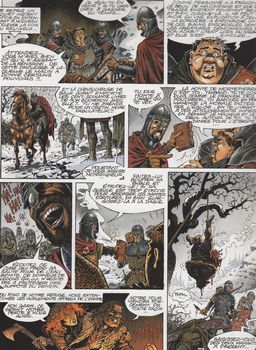 remarques: | tome 1 chair et soufre 1317, une jeune femme rousse, Florie Maujour, dit la Renarde, porteuse d'un gros collier de chien-berger pour se protéger des morsures, doit se défendre contre une horde de loups affamés elle sera secourue par son ami, le bûcheron Garin avec sa hache d'estoc et par les sbires du triste sire, le baron Thibaud de Mortepierre qui ne vaut pas mieux qu'un loup et qui se payerait bien la rousse si celle-ci n'avait pas la réputation d'être une sorcière par la suite, la rousse Florie tentera de tirer sa soeur Bérengère des griffes de Thibaud de Mortepierre qui veut faire usage de son droit de cuissage; pour cela, Florie cherche à amadouer la gente dame Yolande, l'épouse de Thibaud qui ne peut toutefois plus rien faire pour contrecarrer les moeurs dépravés de son indigne époux >>> p. 19 dame Yolande dans sa chambre entourée d'une nuée de chats un peu plus tard, Florie sera aidée par des guerriers à l'armure rouillée, armure fabriquée par Nicolas, le forgeron Florie aura encore affaire à Chincholle-le-Bouteur, chef d'une bande d'êtres malfaisants habitant la grande forêt; c'est alors que Florie découvre un de ses dons cachés: le pouvoir de manipuler le feu et le soufre débarrassée de Chincholle, Florie part vers de nouvelles aventures avec ses amis Garin, le beau bûcheron et Nicolas, le forgeron, dit Souffle-le-vent qui était détenu prisonnier par Chincholle-le-Bouteur, rendu maintenant hors d'état de nuir >> de l'héroïc-fantasy érotique parsemé de sorcellerie, néanmoins un scénario et un graphisme acceptable qui ressemble beaucoup à Loisel et Tarquin/Arleston dans la quête de l'oiseau du temps et de Lanfeust de Troy, également un bon coloriage |