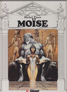 remarques: | album en couleur, 63 pages un homme vient chercher le cadavre de Moïse, il le transporte dans un temple où se trouve déjà de nombreuses femmes dont la fille de pharaon et la déesse-mère, Moïse est confié à la déesse-mère qui le ressuscite tout comme le pharaon Ramsès qui lui est débarrassé de ses bandelettes de momie >> p. 18/19 la déesse-mère Moïse rencontre alors à nouveau son ancien adversaire, le pharaon Ramsès >> p. 24 Moïse et Ramsès c'est alors que la fille de pharaon leur fait part à tous deux de certaines révélations où l'on apprend le fond de l'histoire: la fille de pharaon était amoureuse de Moïse mais comme Moïse la délaissait pour s'occuper de ses frères hébreux, c'est la fille de pharaon qui a manigancé les plaies d'Egypte pour se venger et détruire Moïse en faisant accuser les hébreux de tous les maux, toutefois contrairement à ses plans, Moïse et son peuple quittèrent l'Egypte avec l'aide de Yehovah >> p. 42 le rêve de la fille de pharaon à la fin de la discussion, Moïse quitte le temple en se dirigeant vers la Terre Promise = l'Eden et c'est Jésus qui devra à nouveau intervenir (n.b. mais on ne saura pas vraiment pourquoi!) >> le texte est un peu loufoque et n'apporte rien de très nouveau, on savait déjà la fille de pharaon amoureuse de Moïse (voir le film les 10 commandements), par contre l'album reste intéressant de par le graphisme fort et bien étudié de Faure |