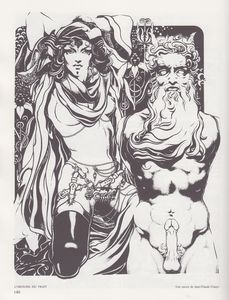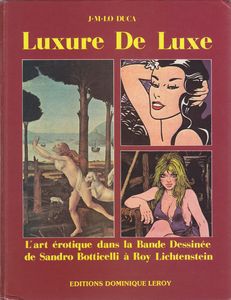 remarques: | - un gros album de 344 pages consacré à l'élargissement d'un essai sur l'érotisme dans l'art et la bande dessinée avec prédominance des fantaisies sexuelles à travers l'imagination de quelques maîtres-dessinateurs de la bande dessinée (Pichard, Crepax, Bilal, Buzzelli, Druillet, Corben, Forest, Frazetta, Manara, Pratt, Moebius et autres) ainsi que les oeuvres d'un maître-artiste peintre comme Botticelli >> du même auteur voir aussi l'album "les triomphes de la bd" 1/ l'érotisme dans l'art et la bande dessinée, commentaires par Eric Losfeld - la chair et le péché de chair, fantasmagorie et extase, de l'androgyne à l'hermaphrodite, de bisexué en transexuel, le mythe du phallus, fellation et cunnilinctus (ou cunnilingus = excitation bucale du sexe de la femme), clitoris et orgasme, l'olisbos et la fonction érotique, la masturbation, les rites amoureux, les études de l'abbé Breuil (préhistorien), les postures les plus saugrenues dans l'accouplement >> p. 8 le phallus et le diable >> p. 13+17 un phallus préhistorique (femme-phallus?) - les illustrations érotiques dans les peintures rupestres, l'érotisme dans la mythologie, les relations sexuelles, l'inceste, l'homosexualité, les maîtres de la jouissance: Sade, Freud, Sacher Masoch la libération féminine des années 60, l'immoralité, l'impossibilité de jouir, l'avortement >> p. 14+19 l'hermaphrodite >> p. 33 le goût des seins chez Pichard >> p. 57+59 planches typiques de Crepax les séries érotiques italiennes: Maghella, Biancaneve, Yolanda, Vampirella, Lucifera, etc >> p. 65-72 les variétés érotiques dans les visages - accouplement avec les animaux tel Leda et le cygne, le sexe des anges >> p. 87 les noces de Nastagio Degli Onesti par Boccace, conte illustré en quatre tableaux >> p. 96/97 Druillet: l'accouplement et l'élan cosmique >> p. 99 à 135 la fellation à travers les âges (= excitation buccale du sexe de l'homme) dont Prinz Eisenschwanz, Picasso, Michel-Ange anamorphose = image déformée d'un objet (exemple un miroir courbe), dans la peinture = représentation volontairement déformée d'un motif dont l'apparence réelle ne peut être perçue qu'en regardant l'image sous un angle particulier >> p. 135 le phallus-enseigne dans la Rome antique (pour indiquer les bonnes maisons à Pompéi), l'homo eroticus, le phallus = verge = organe mâle en érection >> p. 142 à 155 histoires du sexe féminin (les deltas), Andromède, torso par Courbet >> p. 149 le sceau-sexe ex libris >> p. 154 la caresse (estampe japonaise) la caresse solitaire (autoérotisme, masturbation) >> p. 157 variations sur l'olisbos, la ceinture de chasteté >> p. 163 à 184 le sein spectacle, seins obsessifs et hypertrophie >> p. 163 une paire de seins lourds avec auréole prononcée >> p. 165 le bandard fou par Moebius >> p. 169 seules les madones pouvaient alors montrer leur sein (la vierge par Masolino) >> p. 174 les seins de Corben >> p. 175 les auréoles des seins (= zones érogènes privilégiées) >> p. 178 la succion >> p. 181 une planche de la Saga de Xam >> p. 183 les seins dans la bd US (Blondie, Dick Tracy, Flash Gordon, Mandrake, the Phantom) >> p. 186 à 190 l'envers vaut l'endroit (le cul, les fesses) >> p. 186 aquarelle de Maupassant >> p. 191 à 199 le baiser, les caresses >> p. 200 à 221 variations sur la copulation, >> p. 222 à 245 le sadisme, tortures, mises à mort et autres souffrances >> le supplice des seins et des saints (Ste Agathe, Ste Catalina) les caractères à tendance sadiste de Chevrotine, Gwendoline, Lucifera, Juliette de Sade, best of Stanton, Baroness Steel, Vampirella - fétichisme, bondage et esclavage >> p. 238/239 l'attelage humain étant un des fantasmes sado-masochistes les plus répandus - l'érotisme de la miction (action d'uriner), scatologie (= concernant les excréments), coprophilie (manipulation des excréments) - les orgies, l'attirance pour les femmes grasses stéatopygie = masse adipeuse dans le sacrum (bassin) et sur les fesses - mythologie de la mer: les nymphes et les sirènes - la zoophilie = attrait, amour pour les animaux (king kong), le bouc = avatar de Satan - Satan, le maître du plaisir, satanisme et vampirisme - lesbiennes, sapphisme = lesbianisme, les amazones, Carlotta ou le palais du plaisir - l'érotisme en science-fiction, avec les extraterrestres, les femmes du cosmos (Barbarella) - les pastiches, Lucky Suck, Tintin quinquin, la bande dessinée underground (Crumb, Betty Boop), l'érotisme dans les comics >> conclusion: l'érotisme depuis l'âge des cavernes jusqu'à l'âge de la bande dessinée en présentant un grand nombre de thèmes érotiques - un voyage assez intéressant avec quelques illustrations bien trouvées et parfois inédites annexes - couverture de l'album a) Vampirella par Gonzales b) les martyres du sein c) Marsaudan d) Maupassant e) Claeys |