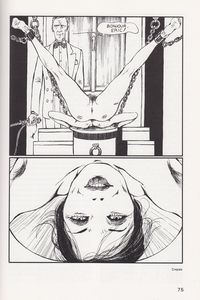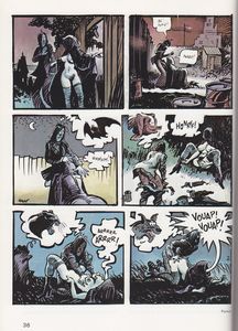 remarques: | titre complet: érotisme et pornographie dans la bande dessinée prologue deux autres ouvrages à consulter sur ce sujet: "l'enfer des bulles" (1968) et "les filles de papier" (1971) la délimitation entre érotisme et pornographie n'est pas toujours facile à définir, la pornographie venant du grec "porne" = prostituée, pornographie = spectacle obscène, érotisme de bas étage Pierre Louÿs aura été le pionnier et le pilier érotique d'une époque, utilisation de la femme comme femme-objet 1/ préhistoire et histoire début de l'érotisme dans la bande dessinée vers 1930 avec les "8-pagers" = petits feuilletons porno-érotiques à ne pas confondre avec les bandes féministes les plus connues dont: Connie de Frank Godwin, Betty Boop de Max Fleisher, Blondie de Chic Young et les fiancées éternelles: Dale et Flash Gordon, Diana et le Fantôme et même Minnie et Mickey >> p. 19 un exemple de "8-pagers" avec Popeye (1933) apparition en 1932 du premier nu intégral avec Jane de Mike Hubbard 2/ signes avant-coureurs d'une libération, les années cinquante développement du courant érotisme au cours de la 2ème guerre mondiale avec entre autre "male call", fin des années 30, apparition des super-femelles tel que Blonde Phantom ainsi que Futura (série SF érotique par John Douglas) et aussi Sheena, queen of the jungle and Wonder Woman >> p. 22 chaque série de Tarzan aura son lot de tarzannes alors que le Tarzan de Hogarth présente une dimension homosexuelle assez marquée (tout comme Alix d'ailleurs) deux auteurs français vont poser les premiers jalons de la bande dessinée érotique: René Pellos avec Futuropolis et Raymond Poïvet avec les pionniers de l'espérance, - la nudité est dure à être acceptée en France dans les années 50, la bande dessinée restant un domaine réservée aux enfants et contrôlée par la loi de 1949, dès 1960 apparition de nombreuses séries érotiques dont la célèbre Barbarella de Forest 3/ Forest: Barbarella le détonateur d'abord publiée par Losfeld en 1964 >> p. 32 description de Forest >> p. 33 une belle planche avec "Hypocrite" >> p. 35 les femmes dans les oeuvres de Forest, littérature moitié science-fiction, moitié fantastique et bien sûr anti-conformiste 4/ Pichard, le sperme de l'image un dessinateur pratiquement inimité à ce jour, prend la relève de Forest en 1967 avec Lolly Strip d'abord, puis avec Paulette, Blanche-Epiphanie, Ulysse et Caroline Choléra - c'est l'érotisation totale de l'image, un festival de seins, de fesses et de cuisses avec son chef-d'oeuvre: Marie-Gabrielle de Saint-Eutrope (ou Marie-Salope), le péché puni par la pénitence où s'entremêlent souffrance et volupté, le corps étant la source du péché doit être purifié par la punition les tendances féministes de Pichard: - les blondes incendiaires (Paulette, Blanche-Epiphanie) - les brunes pulpeuses (Circé, Lolly Strip) - les pichardettes (Marie-Gabrielle) 5/ Paul Gillon, un professionnel pudique classique on n'a pas besoin de déshabiller les filles pour les rendre érotiques (Gillon dixit) 6/ Philippe Druillet, entre vie et mort le surréalisme dans la bande dessinée, établissant dans chaque planche sa propre définition esthétique et expressive >> p. 53 une planche inédite de Druillet 7/ les autres avec notamment Gotlib et la dérision sexuelle dont les explosions sexualisées 8/ Sergio Macedo de la bande dessinée érotique exprimée en troisième dimension avec de nombreuses variations dans la couleur 9/ Francis Masse dessinateur dans Métal Hurlant et l'Echo des Savanes, du morbide en N&B, mais pas toujours vraiment érotique 10/ Gir/Moebius, un artiste bicéphale un univers à part, de tendance parfois underground, mais au graphisme plutôt classique 11/ les "fumetti per adulti" spécialisés en Italie avec les petits formats érotiques, voir même pornographiques et bon marché des récits simplets mais parfois bien dessinés avec une grande sélection de filles en papier - les premiers récits créés en 1962 dont "diabolik" (Facciolo), "kriminal" (Magnus) et "Zakimort (Bozzoli en 1965), des revues plus genre criminel que érotique, un mélange de sexe et de mort, celles-ci seront suivies par une multitude de petits formats porno-erotico-crimino-historo-sado-humoristico avec souvent des scènes hystériques, le sexe étant omniprésent avec toutes sortes de fantasmes >> p. 66 mais pas toujours de bon goût - les héroïnes les plus connues: Jézabel, Isabella, Jacula, Justine, Jungla, Lucifera, Maghella, Messalina, Vampirella, Yolanda, le tout adapté en France par Elvipresse mais la qualité n'est pas souvent au rendez-vous 12/ Crepax, notre danger naturel chez Crepax, l'érotisme devient de l'esthétisme féline avec Anna, Valentina et Bianca - pour Crepax, la douleur est source de jouissance, les traits de son graphisme sont très fins mais aussi très poussés, il est avec Pichard, il est l'un des plus grands dessinateurs érotiques >> p. 73 et 75 la flagellation 13/ Guido Buzzelli, un Goya italien oscille entre peinture et bande dessinée, avec une tendance zoophilique de par ses bêtes humaines (la révolte des ratés), puisant ses sources d'inspiration dans un contexte socio-historique, tourment des corps et supplice des chairs 14/ l'école espagnole dont parmi d'autres: Ribera, Bielsa, Blasco, Fuente, Clavé, Parras et Jimenez avec une prédisposition pour la torture, inspiré peut'être de l'Inquisition, l'art du maléfice étant poussé à l'extrême (Dracula, Vampirella), des dessins généralement aux atmosphères ombrées et travaillés avec des dégradés de couleurs 15/ le nouvel âge d'or américain - avec de grands dessinateurs tel que Eisner dans The Spirit présentant une nouvelle écriture sémiotique-graphique (= concernant les signes) - apparition du thème de bondage avec le maître du genre: John Willie dans "sweet Gwendoline" et du sadisme avec Jim "baroness steel" et Stanton "best of Stanton" (
