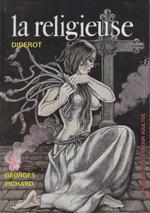 remarques: | récit de bd érotique inspiré du roman de Diderot - une jeune femme, Suzanne, est contrainte par sa famille à entrer dans les ordres, mais elle n'accepte pas cette réclusion et cherchera à retourner à la vie laïque malgré les nombreuses pressions (et supplices) qu'elle subit - sa mère, mme Simonin, finira par lui avouer que sa fille Suzanne est née d'un amant inconnu qui a délaissé sa partenaire après coup - Suzanne doit maintenant expier la faute de sa mère en se mortifiant dans la honte et la douleur auprès des soeurs tortionnaires >> p. 36 à 40 les soeurs lesbiennes >> p. 44 le supplice de soeur Thérèse, amante de Suzanne - grâce aux efforts d'un avocat et d'un jeune bénédictin, Suzanne réussira à quitter le couvent pour se retrouver toutefois confrontée à de nouveaux dangers dans la société civile et Suzanne devra s'accommoder d'un autre genre de couvent: un bordel >> un album plutôt moyen de Pichard, dérivé de récits antérieurs, même les illustrations ne sont plus vraiment de qualité pichardienne - quelques bonnes planches mais avec des femmes passablement décharnées - autre roman connu adapté par Pichard: Germinal de Zola annexes - 1er et 4ème plat de l'album |