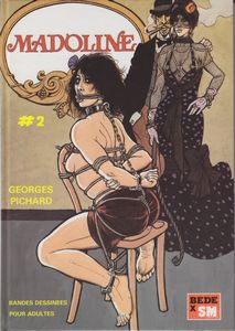 remarques: | Madoline tome 2 le retour - ménage à 4: Edouard, Noemi, Madoline et Bégonia Madoline se rebelle, elle est suppliciée, ligotée, enfermée dans une caisse et livrée à un pensionnat d'état pour filles dévoyées dont le directeur est Monsieur Morfondar >> p. 9 une fille n'a pas besoin de savoir lire - Madoline devient propriété de l'état et porte le no 12705 >> p. 13 l'histoire de Philippa, épouse perverse de Morfondar, envoyée au bagne Colonia de Porto Crados sur l'île Infernia >> p. 14 l'embarquement sur le navire-prison >> p. 16 le dressage de Philippa - quant à Madoline au pensionnat, elle est mise aux travaux forçés >> p. 19 la punition pour le travail mal fait - après quoi, Madoline est vendue à Poulerotti, directeur d'un cirque, qui la fera monter par un homme-singe et par plusieurs autres animaux >> p. 48 la dernière planche de l'album est peut'être la plus perverse >> on reprend la Mandoline et on repart sur un air connu, mais cette fois, ce nouveau récit de notre ami Pichard baisse nettement en qualité annexes - couverture de l'album - portrait de Madoline |