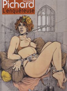 remarques: | - probablement la dernière bande dessinée érotique de Pichard réalisée en 1996 avant sa mort en 2003 - après l'érotisme soft de Marie-Gabrielle, c'est du porno hard avec Clorinde, la jeune détective - Clorinde est engagée et chargée par l'agence de détective Pornibus de surveiller une épouse volage ayant abandonné le domicile conjugal, l'enquête de Clorinde la mènera au purgatoire terrestre où des masochistes se font emprisonner pour y subir des sévices complexes - Clorinde croisera sur son chemin une foulee de personnages hétéroclites: voyou proxénète, homme d'affaires vicieux, diseuse de bonne aventure, etc >> p. 14 l'élevage et le dressage des putes >> p. 16 un plat de résistance >> p. 26 le purgatoire céleste n'est plus d'actualité >> p. 30 mais le purgatoire terrestre existe bien - et en entrant dans ce purgatoire, Clorinde deviendra elle-même une pensionnaire assidue >> p. 42 elle y subit un dressage accéléré - finalement on la laissera partir après qu'elle ait subi >> p. 44 les plaisirs coupables >> du hard porno sur fond d'enquête policière adieu les pichardettes bien fraîches du début remplacées maintenant par des femmes plutôt décharnées, idem pour le texte qui n'est vraiment pas recherché, seule la couverture est quelque peu alléchante, mais elle n'est pas de Pichard (voir croquis inachevé de Pichard en page de garde) annexes - couverture de l'album - croquis inachevé de Pichard |