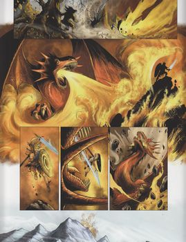 remarques: | le premier âge touchait à sa fin, les hordes de Jutenheim déferlent sur le Walhalla, mais elles sont repoussées par Donner (Thor) qui, avec son mjollmir (= marteau), assomme >> p. 4 le Skollberg, un monstre terrifiant amené par les géants entretemps Siegfried, élevé par Mime, est devenu un adolescent et le souffre-douleur de ses compagnons de jeux, mais il fait déjà valoir ses pouvoirs spéciaux tandis que Wotan regrette de ne plus avoir à ses côtés Brunhilde, sa fille préférée avec Mime, son père adoptif, Siegfried cherche à façonner l'épée qui lui permettra de vaincre Fafner, mais leurs efforts n'aboutissent toujours pas, Siegfried cherche aussi à connaître la vérité sur sa mère >> p. 18/19 rivalité entre Loge (Loki) et Donner (Thor) pourchassé par des gobelins, Siegfried tombe sur la stèle où gît Brunehilde, ce n'est encore qu'un songe mais plus tard, ce sera Siegfried qui réveillera la walkyrie >> p. 26 à 29 le réveil de Brunhilde par la suite, Siegfried rencontre le nain ou la créature hideuse à qui Loki avait confié les débris de l'épée Nothung à la même place, Siegfried découvre le cadavre d'une jeune femme blonde (Sieglinde) avec les débris de l'épée, Siegfried se confectionne maintenant l'épée magique qui lui permettra de vaincre Fafner et demande à Mime comment sa mère est morte, Mime lui répond faussement que le dragon Fafner a tué sa mère >> p. 42 à 45 le combat entre Siegfried et le dragon en s'emparant de l'anneau et après avoir été baigné dans le sang du dragon (sauf sur un point entre ses omoplates où une feuille de saule s'était posée) Siegfried devient invincible, il apprend aussi par l'anneau le secret d'Albéric et de Mime, il vengera sa mère en tuant Mime >> le récit reprend à nouveau les thèmes principaux de la mythologie nordique en y ajoutant quelques passages complémentaires pour les besoins de la série BD le texte reste assez intéressant sans toutefois apporter de grandes nouveautés, mais c'est surtout le graphisme qui rend cet album très attractif avec en plus une superbe couverture d'album il y aura encore six albums parus sur cette saga mais qui ne sont pas collectionnés ici: 4/ Brunehilde (2010) 5/ Kriemhilde (épouse de Siegfried, 2010) 6/ Ragnarök (2012) 7/ le grand hiver (2013) 8/ le sang d'Odin (2014) 9/ Yggdrasil (2016) |