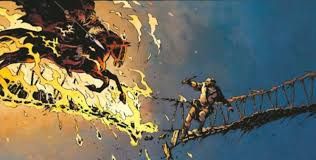 remarques: | tome 2 livre II, la révélation, 50 pages toujours 30 ans après la mort du Christ résumé alors que l'occupant romain notamment le sénateur Modius met la Palestine au supplice, celui que l'on appelle maintenant le prince des princes le messie, part vers l'Orient, il suit l'appel mystique du 3ème testament, clé du royaume de dieu et promesse de la fin de toute souffrance à ses côtés, l'ancien général Julius a une tout autre vision: il veut faire de ce "messie" un chef de guerre capable de libérer son pays, il s'impose donc dans le petit groupe qui part vers l'Orient, bien décidé à ramener son ami à la raison et auprès de sa fille Livia, tandis que des ombres mystérieuses s'étendent sur les murs de Babylone Julius ignore que la quête du 3ème testament le mènera plus loin qu'il ne l'imagine entretemps le sinistre sénateur romain Modius en Judée est à la recherche de quelque chose d'ancien alors que le messie, Julius et les rebelles juifs ont trouvé refuge à la forteresse d'Ein Guedi en plein désert, le messie est surnommé maintenant "Sar ha Sarim" = le prince des princes et s'attache à une tâche que lui seul connait, partir à la quête de la parole de dieu pendant ce temps les troupes romaines apprêtées par Modius ont été décimées par les forces des ténèbres le messie se met en marche vers l'Orient accompagné de Julius, qui promet à Livia de protéger le messie, et d'un groupe de "choisis", après avoir traversé un dernier village juif et un long désert, le groupe arrive à la frontière du royaume parthe puis à Babylone >> p. 25 à 27 Babylone la Grande et la tour de Babel inachevée, à Babylone, ils sont accueillis par Moshe, un riche juif établi dans la cité >> p. 31 les jardins suspendus de Semiramis le messie rencontre aussi l'astrologue de Babylone qui lui prédit une sombre destinée de par la confrontation avec les fils de la nuit et en quittant Babylone, le groupe est traqué par de mystérieuses apparitions l'errance se poursuit vers l'Orient et l'inconnu via Isfahan et le désert du sel, puis dans une contrée montagneuse, ils découvrent une ancienne cité bâtie par Alexandre le Grand, mais à présent déserte et fantômatique où ils sont agressés par >> p. 48 les cavaliers des ténèbres le groupe réussit encore une fois à leur échapper, le but du messie est remis en question, mais la quête continue >> malgré un bon graphisme de Montaigne, le scénario erre dans les pages désertiques du récit comme le messie erre dans l es déserts de l'inconnu, on ne retrouve plus le scénario plus concret du premier tome, ce n'est plus qu'un trajet touristique contrarié par des forces démoniaques |