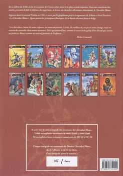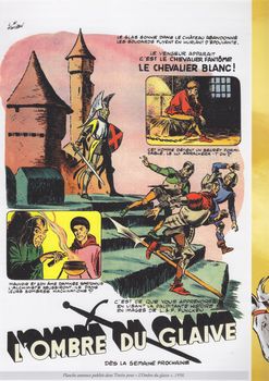 remarques: | dossier le chevalier blanc et les Funcken, hérauts du Journal Tintin 1/ biographie de Fred (1921-2013) et Liliane Funcken (1927-2015), Fredtravaille après-guerre pour Aventures Illustrées/Bimbo avec divers récits, notamment Tommy Tuller; en 1947, il participe à Heroic-Albums sous la direction de Chevenal et avec Tillieux puis ce furent les couvertures des petits formats "capitaine Ricardo" + "Victor Vincent" écrits et édités par Gustave Van Loo (1949) 1947, réalisation du "cimetière des baleines" aux éditions Campéador 1949 connaissance avec Liliane Schorils qu'il épousera et dès 1953 collaboration étroite pour les dessins de leurs créations, 1952, "les belles histoires de l'Oncle Paul" avec scénario de Charlier et en alternance avec d'autres auteurs, notamment Octave Joly, le tout publié chez Spirou enfin en 1953 les Funcken passent chez Tintin avec d'abord "le trône de Gilgit", puis ils se spécialiseront surtout dans la BD historique et ce sera "le chevalier blanc" sur une idée de Macherot (série qui sera repris pour deux épisodes en 1983 par Didier Convard) en 1955, les Funcken signent avec l'abbé Schoonjans "l'histoire du monde" qui durera jusqu'en 1962 dans le journal Tintin belge et qui totalisera 1630 vignettes (3 albums parus chez Lombard pour les premiers épisodes) 1956 Harald le viking, un héros maritime 1959-1960 Jack Diamond, western 1963-1971 Capitan, histoire de cape et d'épée 1967-1969 Doc Silver, western fin 1960, participation à "flamme d'argent" de Cuvelier et au "piège diabolique" de Jacobs 1965 début de la prodigieuse encyclopédie des uniformes et des armes (17 ouvrages de renommée mondiale parus entre 1966 et 1982 chez Casterman) 1985 un album Lombard "le croissant et la croix" 1993/1994 une reconstitution historique de la vie de Bonaparte/Napoleon >> les Funcken, un couple unique dans l'histoire de la bande dessinée 2/ le chevalier blanc inspiré par Macherot, le dessin de Macherot ne convenant pas à Hergé, celui-ci le confie aux Funcken, Macherot se consolera avec sa série animalière "Chlorophylle" les illustrations du chevalier blanc sont basées en grande partie sur des ouvrages de Friedrich Hottenroth, des lithographies de personnages et de costumes historiques dont "l'art du costume" avec Jehan de Dardemont et ses deux compagnons Taillefer et La Flèche contre au début Conrad le loup, le seigneur du lac, cette bande dessinée ayant un côté moral sans érotisme, un genre de Zorro en armure il y aura dans le même genre par d'autres auteurs: Francisco Hidalgo et le chevalier au blason d'argent chez Coeurs Vaillants en 1983, la série fut reprise par Didier Convard, le futur créateur du Triangle secret; chevalier blanc fut la série préférée des Funcken la publication des aventures de chevalier blanc connut plusieurs éditions d'abord Lombard cartonné, puis Jeune Europe broché, Chlorophylle en noir&blanc, les derniers épisodes publiés par Helyode en 1994, en tout 12 épisodes comme mentionnés ci-dessous 1/ le chevalier blanc 1954 2/ le nectar magique 1954 3/ le trésor de Nezzour Pacha 1955 4/ l'usurpateur (épopée tartare) 1955 5/ l'ombre du glaive 1958 6/ sans pitié 1960 7/ l'agresseur inconnu 1961 8/ échec au roi 1961 9/ le signe fatal 1961 10/ le serment de l'archer 1963 11/ l'héritier de la horde d'or 1984 (à nouveau une épopée tartare) 12/ le trésor des Cathares 1984 toutes les aventures de chevalier blanc ont été rééditées en couleur par les éditions BD Must 3/ ce cahier contient aussi de nombreuses illustrations de planches-annonces sur les aventures de chevalier blanc parues dans le journal Tintin + une interview de Fred et Liliane dans Tintin belge no 37 de 1963 + une lettre datée du 14.9.1960 de Jacobs concernant 12 planches pour la partie moyen-âge de l'album "le piège diabolique" >> un résumé tout à fait intéressant sur la biographie et les oeuvres des Funcken, repris néanmoins de différentes sources (principalement dans Hop et Age d'or) |