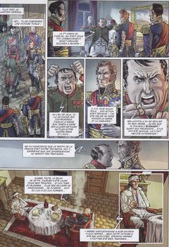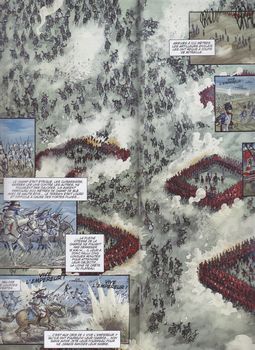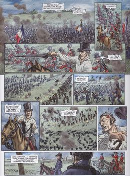 remarques: | 1ère partie: la bande dessinée la bataille de Waterloo racontée par Larrey et Blücher, récit basé aussi sur les mémoires de Larrey 1812-1840 et que Napoléon a désigné comme l'homme le plus vertueux qu'il ait rencontré prologue: 19.6.1815 le dr. Larrey est sauvé du peloton d'exécution et présenté au général Vorwärts = Blücher les raisons du retour de l'Ogre depuis l'île d'Elbe (>> p. 83 tentative d'assassinat, rumeur sur une déportation plus lointaine, et refus par Louis XVIII de verser la pension annuelle à Napoléon, ce qui constituait un non-respect des clauses du traité de Fontainebleau) comme expliquées à Blücher par Larrey qui défend son empereur et la suite des opérations: débarquement au golfe Juan (le vol de l'Aigle), la reprise du pouvoir sans effusion de sang, la réconciliation avec le peuple français, toutefois le retour de Napoleon terrifiait à nouveau l'Europe entière et provoque une septième coalition début juin, Larrey est mandé par Napoleon pour accompagner l'armée, mais Larrey a déjà un mauvais pressentiment le 15.6. Napoleon entrait à Charleroi où il est déjà trahi par le général Bourmont qui passe à l'ennemi et plusieurs hauts officiers de son entourage n'avaient plus la foi du combat et auraient préférer profiter de leur fortune, de plus, Napoleon n'était plus en bonne santé >> p. 22 Napoleon qui étudie toujours le terrain sur lequel il va combattre bataille de Ligny défaite prussienne alors que Blücher voulait venger Iena >> p. 36 les ambulances volantes de Larrey Blücher échappe de peu à une capture, les prussiens sont battus, mais pas anéantis, Ney n'ayant pas exécuté les ordres prévues par Napoleon (s'emparer de suite du carrefour des quatre bras et envelopper la partie droite de l'armée de Blücher) il manque le bon Berthier pour anticiper les ordres de Napoleon et ainsi Blücher peut réorganiser ses troupes bataille de Waterloo Wellington doit se retirer sur le Mont-St-Jean (une bonne position défensive) en attendant l'appui de Blücher, méfiance de Gneisenau à l'égard de Wellington qui semble se battre plus pour ses intérêts personnels que pour la cause commune, toutefois Blücher veut le soutenir et concentre son offensive sur le flanc droit français >> p. 48 les chevaux des commandants: Copenhague pour Wellington et Désirée pour Napoleon à Waterloo, à cause du terrain détrempé, le bataille ne s'engage qu'à 11.35 heures (deux heures trop tard), la position de Wellington a été bien choisie pour une défense générale et le 18 juin au matin, Wellington avait renforcé son flanc droit avec le verrou de la ferme fortifiée de Hougoumont négligée par le général Soult, son assaut fut le drame de cette bataille (Wellington renforce son aile droite car il attend l'arrivée de Blücher sur son aile gauche) Napoleon ordonne comme objectif principal de s'emparer de la Haie Sainte au centre du dispositif de Wellington, tandis que les prussiens commencent à arriver sur l'aile droite de Napoleon sans que Grouchy puisse les inquiéter en attendant Wellington contre-attaque d'abord avec Picton et ses tirailleurs, puis avec les dragons de lord Uxbridge et de Ponsoby (les Scots Greys) qui seront refoulés par les lanciers de Napoleon Wellington execute une retraite tactique pour se mettre hors de portée des canons français, Ney y voit une retraite forcée et ordonne une charge des cuirassiers de Milhaud, il est 16.00 heures, les cuirassiers vont se faire décimer par les 13 carrés de Wellington disposés en échiquier >> p. 73/74 la charge des cuirassiers Napoleon fait donner la Garde qui sous la mitraille anglaise meurtrière doit se retirer pour la première fois dans l'histoire de la Grande Armée, c'est la déroute sur le front français avec la percée des prussiens et durant la retraite des ambulanciers, le baron Larrey est blessé et fait prisonnier Blücher aimerait nommer la victoire Belle-Alliance, Wellington préférera Waterloo, Blücher fait relâcher Larrey qui avait sauvé la vie de son fils aîné quelques mois auparavant 2ème partie, le récit de la bataille - une défaite qui est devenue un mythe les clauses du traité de Fontainebleau n'ayant pas été respectées, Napoleon quitte l'île d'Elbe et débarque en France, une nouvelle guerre se prépare 1/ les forces en présence a) France: l'armée du nord avec Soult, Grouchy, Ney et Drouot, mais il manque les meilleurs Murat, Davout, Berthier et Ney n'est pas au mieux de sa forme 125'000 hommes, 370 canons b) Angleterre: Wellington avec le Prince d'Orange, une armée anglo-hollandaise disparate (avec écossais, hanovriens et belges) dont Wellington dira "an infamous army" 95'000 hommes, 186 canons c) la Prusse: Blücher et Gneisenau qui vouaient une haine féroce à Napoleon, 100'000 hommes, 300 canons - Napoleon veut battre séparément en Belgique les anglais et les prussiens, la stratégie des alliés: rester sur la défensive et attendre de prochains renforts (russes et autrichiens) 2/ bataille de Ligny 16.6. début sous de mauvaises augures: - Bourmont passe à l'ennemi en révélant peut'être les plans de Napoleon - Ney omet de s'emparer de suite de la position stratégique des Quatre Bras, ce qui aurait pu empêcher la jonction entre anglais et prussiens - victoire française, mais l'armée de Blücher n'est pas anéantie et peut encore opérer sa jonction avec les anglais 17.6. début de Waterloo tandis que Grouchy s'efforce de poursuivre Blücher sans pouvoir le localiser (il déjeûne avec des fraises) et sans écouter les conseils du général Gérard, donc son action restera sans suite (mais Napoleon n'aurait pas dû donner une troupe aussi importante à Grouchy) - Napoleon apprend que Wellington a quitté les Quatre-Bras et s'est retranché sur la position défensive du Mont-St-Jean en fortifiant son dispositif de défense sous forme de redoutes: à sa droite Hougoumont, au centre la Haie-Sainte et