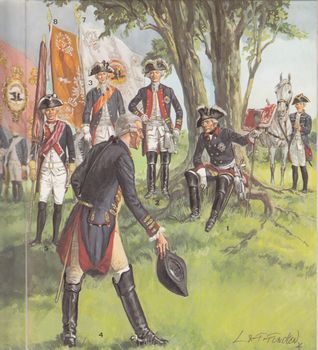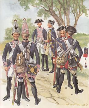 remarques: | titre complet: uniformes et armes des soldats de la guerre en dentelle, part 1 tome 1 France: maison du roi et infanterie sous Louis XV et Louis XVI Grande-Bretagne et Prusse: infanterie (1700-1800) 1/ France, maison du roi - les gardes du corps, gardes de la manche et gardes écossais, les cent-suisses - garde de la porte et de la prévôté, les gendarmes de la garde, - les chevau-légers de la garde, les mousquetaires de la garde, - les grenadiers à cheval, les gardes-françaises, les gardes suisses, - la gendarmerie de France, la maréchaussée de France, la maison des princes 2/ France, infanterie - l'état-major, les drapeaux, l'infanterie de ligne, - les corps spéciaux, milices de France, régiments provinciaux - armement et équipement, les sapeurs, - tambours, tambours-majors et musiciens - sous-officiers et caporaux, les officiers - les chasseurs à pied 3/ Grande-Bretagne, infanterie - le Bel-Anglais (Marlborough), le soldat, les grenadiers, les fusiliers, - le livre de 1742, tambours, fifres et musiciens - officiers et sous-officiers, les troupes écossaires, les Highlanders - l'ordonnance de 1768, les drapeaux, les Foot Guards, - l'infanterie légère, évolution de l'uniforme 4/ Prusse, les rois de Prusse et naissance d'un royaume - sous Frédéric le Grand, drapeaux, officiers et tambours - naissance d'une armée, organisation de l'infanterie prussienne - la tactique, le grand maître de l'uniforme (Menzel) - les régiments de garnison, chasseurs et corps francs >> un premier album tout à fait intéressant avec toujours de sublimes illustrations |