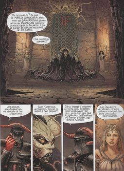 remarques: | IIIème cycle, série les sorcières une sorcière sauve la vie d'un chevalier agressé par des inconnus et laissé pour mort, il est soigné dans le domaine "tête noire" de la sorcière (une bonne sorcière!), on apprend que le chevalier devait se rendre au château du roi Brendam pour lui remettre un message sous forme d'une amulette >> p. 10 le château de Brendam où règne aussi la reine Jamaniel Elva, le prince des Marches, leur fils, a de grandes ambitions et il a été l'instigateur de l'attentat sur le chevalier, mais ses motifs ne sont pas encore connus entretemps le roi Brendam rentre de la chasse, il n'aime plus son épouse et la chambre nuptiale est devenu un enfer pour lui, mais il est encore saisi par le désir >> p. 23 la sorcière "inferno flamina" qui prédit au chevalier (dont le nom est Vivien) qu'il est celui qui ouvrira la chair (?) et en mentionnant le nom d'inferno flamina, les habitants d'un village se donnent la mort en se jetant du haut d'une falaise (?) plus tard le seigneur Brendam apprend d'un ami que la soeur de celui-ci, une ancienne maîtresse nommé "flamina" de Brendam a eu un fils de Brendham, c'est justement le chevalier Vivien qui retourne chez son père Brendham conseillé par le frère de Flamina et qui lui a donné une amulette comme signe de reconnaissance pour Brendham puis c'est la sorcière flamina devenue folle qui s'étant libérée de sa cage de fer veut tuer Brendham >> p. 39 la sorcière folle Flamina finalement Vivien arrivera au château mais il devra passer l'épreuve des loups pour être reconnu >> un début peu sorcier pour ce troisième cycle, n'est pas sorcière qui veut! un récit incohérent, peu clair, à tout vent et sans grand intérêt, mais avec un graphisme acceptable, qui n'a plus rien de commun avec le style Rosinski/Delaby un 2ème volume de ce IIIème cycle sera publié en 2018 sous le titre "Inferno", puis un 3ème et dernier album en 2021 "lord Heron" mais non collectionnés ici (voir couvertures en annexe) annexes - couverture de l'album - trois illustrations tirées de la série - couverture du tome 2 a) N&B b) couleur - couverture du tome 3 |
