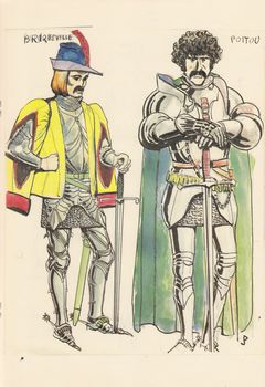 remarques: | - cahier hors série "Jhen", album broché n&b et couleurs, Éditions CBEBD, 1988, 12 pages de croquis par Jean Pleyers, exemplaire n°486/600, signé par l'auteur, EO - 600 tirages pour les librairies belges (50 exemplaires attribués à chaque librairie): - l'Age d'or à Charleroi, Jonas III à Ixelles - Forbidden Worlds à Saint-Gilles, 9ème Kunst in Gent - la bande des six nez à Ixelles, Jonas II à Uccle - le fantôme espagnol à Bruxelles, Cubitus B.D. à Binche - Chick Bull à Bruxelles, Deuxième Souffle à Saint-Josse - Florair 3000 à Jette, Comix à Liège et 100 exemplaires aux membres de la chambre belge des experts en B.D., à l'auteur et à la presse >> petit fascicule surtout intéressant par les 4 planches couleur de Pleyers annexes - couverture du cahier - les deux acolytes de Gilles de Rais: Briqueville et Poitou Information - Jean Pleyers né le 27.6.1943, à 7 ans il remporte le premier prix de dessin d'un concours organisé par l'I.N.R. - après son service militaire, il travaille avec Forton comme encreur pour PIF, il dessine ensuite pour divers éditeurs: Tintin, Le Soir, La Libre Belgique, Aredit, Deligne - c'est Paul Cuvelier qui lui fera rencontrer Jacques Martin, de cette collaboration naître JHEN (XAN) - Dionnet et Manoeuvre lui ouvrent les portes de Métal Hurlant où Pleyers crée "les êtres de lumière", une très bonne série, malheureusement interrompue trop tôt - par la suite, il produira les séries Giovani et Keos |