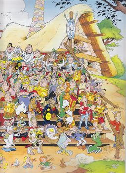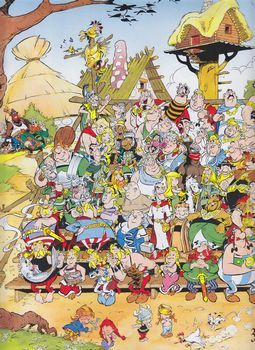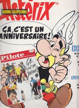 remarques: | Astérix a 35 ans depuis sa parution en 1959, un numéro spécial unique anniversaire François Clauteaux fut le père spirituel du journal Pilote >> p. 4-7 4 planches inédites par Uderzo sur la naissance d'Astérix 35 avant J.-C., ses parents: Astronomix et Obélodalix 1959 >> p. 8 photo de l'équipe de Pilote en 1959 dont Goscinny, Charlier et Uderzo + couverture du no 0 de Pilote (prépublication) >> p. 9 couverture du no 1 du 29.10.1959 avec en page 20 la première planche des aventures d'Astérix scénariste: René Goscinny, un juif d'Europe de l'Est, franco-americano-argentin dessinateur: Albert Uderzo, un gallo-romain, fils de rital émigré n.b. les scénarios de Goscinny prennent souvent comme base d'information les écrits de Jerôme Carcopino (l'antiquité romaine) 1960-1969 - l'Express consacre sa couverture du 19.9.1966 au phénomène Astérix et Astérix prêtera son nom au premier satellite français - en 1961 parution du 1er et en 1969 du 14ème album (Astérix en Hispanie) - Idéfix apparait dans "le tour de Gaule" (1965) - et en 1967 premier film sur Astérix, le gaulois >> p. 15 la planche "conférence de presse par Abraracourcix" 1970-1979 - Georges Dargaud, René Goscinny et Albert Uderzo s'associent en 1974 pour créer leur studio d'animation (dont les 12 travaux d'Astérix) - 5.11.1977 mort de Goscinny - jusqu'en 1976, 9 albums seront publiés avec Goscinny comme scénariste - le 10ème album (Astérix chez les belges) paraîtra en 1979 3 ans après (on en est à 24 albums série pure Astérix) 1980-1989 - fondation des éditions Albert René avec le premier nouvel album "le grand fossé" - trois autres suivront jusqu'en 1987 + 2 hors-série - le parc Astérix ouvre ses portes en 1989 - interview avec Pierre Tchernia "la gauloiserie" 1990-1994 - une planche avec Uderzo et Goscinny interviewé par M. Cinéma pour l'album Astérix chez les Helvètes >> p. 22/23 le merchandising Astérix >> p. 24/25 la grande famille Astérix qui fera aussi l'objet d'un puzzle, on distingue Goscinny et Uderzo) - un nouvel album (la rose et le glaive) en 1991 et un hors-série (Astérix et la rentrée gauloise) en 1993 >> p. 26-28 5 suggestions pour des adaptations d'Astérix en film à partir de la page 30 nombreux pastiches d'Astérix par Boucq, Gotlib, Margerin, Tibet, Tranchand, Robin, Riff Rebs (pas très optimiste), Zou (avec Gérard Depardix), Martial, Delinx, Godard, Dany + 2 petits récits imaginés par Uderzo et Goscinny - Luc Junior (1954) - Benjamin et Benjamine (1956) >> un journal unique et anniversaire mais pas forcément exceptionnel, toutefois assez intéressant et avec quelque détails supplémentaires sur Astérix, l'oeuvre et les auteurs |