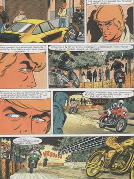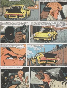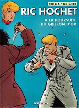 remarques: | journaliste-détective, Ric Hochet paru dans Journal de Tintin (1955/1958) avec le commissaire Bourdon, premier album "traquenard au Havre" (1963), une des plus longues séries parues dans le Journal de Tintin avec 78 albums publiés, une bande policière réaliste aux multiples rebondissements et remplie de personnages secondaires passionnants l'histoire met en action Richard, le père de Ric Hochet (même coiffure que son fils), un Ric Hochet qui ressemble de pllus en plus à Claude François, avec des pantalons à la mode pattes d'éléphant Ric et son père, Richard, vont tenter lors d'une émission TV "façe au crime" de démasquer certains coupables resté impunis et pour le premier coupable, c'est Richard père qui surpasse le fils >> p. 7 le cerveau de Ric en capilotade et les jambes en coton >> p. 13 le numéro de téléphone qui reste bloqué quand d'un côté on n'a pas décroché, mais que l'on a décroché de l'autre côté (?) la 2ème action se passe dans le voyage fantôme d'une fête foraine (ce qui fait le sujet de la couverture d'album) >> p. 14 entrée en scène de Nadine, nièce du commissaire Bourdon >> p. 19 le fameux signe à déchiffrer puis Ric avec sa doublure Clara lors du tournage d'un film sont sujets d'une tentative de meurtre et peu après, c'est au tour du coupable surnommé Monsieur Vautour d'être démasqué >> p. 33 le visage du vautour qui n'est malgré les apparences pas le vrai coupable dernier méfait: le crime parfait avec >> p. 39 la célèbre porsche de Ric Hochet >> p. 44 les drogués de la vitesse et à nouveau ce n'est pas le coupable présumé qui sera le véritable coupable >> 38ème album de Ric Hochet, pas le meilleur, le manque d'imagination se fait sentir, mais c'est normal après une série de 38 récits et le graphisme n'est plus aussi élaboré que dans les premiers albums, bref un album dont la couverture peut faire peur, mais qui ne surprendra guère le lecteur annexes - couverture de l'album - extraits de page - couverture du dernier album no 78 et du no 79 en 2012 Ric Remix édité par David Vandermeulen, une édition inédite qui n'a jamais eu de suite + couverture de 50 ans d'enquête, album-anniversaire collector limité à 7000 exemplaires composé des 46 pages de la nouvelle aventure "Silence de mort" ainsi qu'un dossier spécial de 30 pages sur la série avec une longue interview des auteurs, leurs bios, les résumés et les illustrations de couvertures des 70 albums de Ric Information 1/ seuls trois 3 albums sont collectionnés ici (les deux premiers et le 38ème pour sa couverture d'album), ceci à titre d'exemplaire représentatif de la série 2/ à noter que la tête de Ric Hochet comme logo d'album en haut à gauche change souvent de forme sur les couvertures Ier plat des albums (comparer avec les tomes 1 et 2) 3/ signe du temps: on remarquera une Nadine avec poitrine dénudée dans le 73ème album "on tue au théâtre ce soir" (avec Frank Brichau qui a remplacé Didier Desmit comme assistant de Tibet dès le tome 68) |