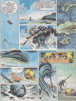 remarques: | peut'être le meilleur album de la série tant pour le graphisme que pour le scenario la rencontre de Simon avec les femmes Maïlis (la mère) et Illyane (la fille) qui se déchirent entre-elles pour Simon >> album où Auclair y mêle aussi la religion à voir: la cérémonie des mutants et le sacrifice de Maïlis |