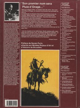 remarques: | dans la série Histoires et Légendes 1/ préface de Derib qui a toujours aimé le peuple des indiens, sa documentation provenant surtout du livre "vie et moeurs des indiens" (Thévenin?) et après la série Yakari et Buddy Longway, Derib commence cette nouvelle série en décrivant la vie d'un voyant-guérisseur indien depuis sa naissance jusqu'à sa mort, ce récit veut présenter l'esprit des indiens, un récit imaginaire mais basé sur des témoignages 2/ l'indien et le bison (buffalo) - la danse du bison, la tradition de la chasse au bison >> p. 4/5 une superbe aquarelle - la préparation du bison post-mortem le pemmican (= viande séchée, broyée en poudre et mélangée à de la graisse et des baies), chaque partie du bison ayant son utilisation - les causes de la disparition du bison: 1/ les modes gastronomiques et vestimentaires (dans les régions de l'est) 2/ la construction de la ligne transcontinentale (le chasseur Buffalo Bill tuait jusqu'à 8 bisons par jour durant 17 mois) 3/ les agriculteurs en introduisant l'élevage du long horn ainsi disparu la civilisation des indiens des plaines, la civilisation du bison (en 1800 60 mio d'espèces, en 1900 plus que quelques milliers) 3/ premier épisode: pluie d'orage >> p. 17 naissance de pluie d'orage, son enfance, ses découvertes, lutte entre tribus rivales, pluie d'orage sera le seul survivant avec sa grand-mère feuille d'automne >> p. 28 on se coupe le petit doigt en signe de deuil (?) ils seront recueillis par une tribu amie dont l'homme-médecine découvre le don de guérison de pluie d'orage qui est aussi l'ami du feu par la suite, pluie d'orage devient le fils adoptif de Ours qui court vite, l'homme-médecine >> p. 40 l'épreuve du froid (après celui du feu) >> p. 41 un cimetière indien >> p. 48-51 la chasse aux buffalos >> p. 53 le songe de pluie d'orage promis à un rôle de premier plan, il deviendra celui qui est né deux fois >> un album avec un texte intéressant (rite et coutumes des indiens à travers la vie de pluie d'orage), mais surtout de superbes illustrations seul l'exemplaire ici présent est collectionné à titre représentatif, mais la série continue avec 2/ la danse du soleil (1984) 3/ l'arbre de vie (1985) 4/ american buffalos/red road (1988) >> collectionné ici 5/ business rodeo (1993) 6/ bad lands (1995), 7/ Wakan (1998) Information - wakantanka = le grand manitou = l'esprit de toutes choses - hooka hey (en français allons-y, en anglais let's go) "it's a way of saying that you're going to sacrifice whatever you can to help the team" said Gap senior Dylan Rankin (professor at Gap's Canadian high school) |