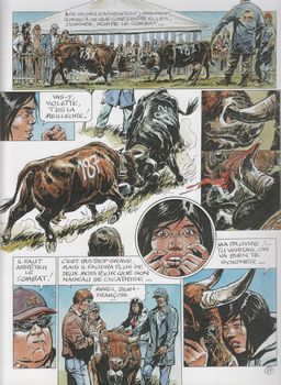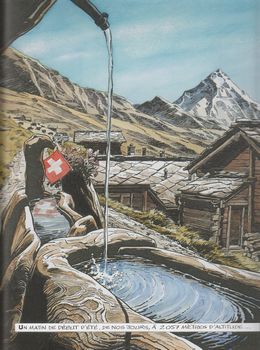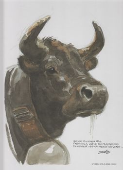 remarques: | album dédié à la magnifique race des vaches d'Hérens la jeune valaisanne, Camille, est confiée aux bons soins de son grand-père Aymond sur l'alpage près d'Evolène à 2057 m durant les vacances d'été et Camille a déjà affaire avec la Baronne, une vache récalcitrante, toutefois Camille développe une bonne relation avec son grand-père et celui-ci aux vacances d'automne lui fait cadeau du veau que la Baronne vient de mettre bas, le veau est baptisé Violette >> p. 16 une belle planche sur un valais automnal, les mélèzes de Derib >> p. 22 la naissance du veau qui deviendra vache et peut'être une grande reine et durant sa scolarité en hiver, Camille fait une fugue pour revoir Violette >> p. 34 la fondue et le secret de grand-père >> p. 37 l'histoire de Maurice, père de Camille: il y a longtemps au mayen d'Aymond, l'accident de la vache qui s'était cassée la patte et que l'on dût abattre, ceci à cause de l'inattention de Maurice, ce fut le début de la dispute entre père et fils, mais ce fut surtout un grand malentendu >> p. 39 Violette devient combative >> p. 41 le printemps au val d'Hérens avec gentianes et bouquetins par la suite, Camille devient agricultrice, elle s'occupera de l'élevage de Violette et après un infarctus d'Aymond, les parents de Camille décident de reprendre à leur compte l'exploitation du mayen Violette est alors inscrite pour les combats de reine d'Evolène et pour son premier combat, Violette est classée troisième, un jour, elle sera reine la fin de l'album contient aussi une documentation sur la vache d'Hérens la vache d'Hérens dans les beaux-arts: peinture, sculpture, photographie et littérature >> la vache d'Hérens et le Valais sous la plume de Derib, un texte acceptable au style plutôt familial, mais surtout de sublimes illustrations et aquarelles n.b. les communes du val d'Hérens: Evolène, Hérémence, les Agettes, Mont-Noble, Saint-Martin et Vex |