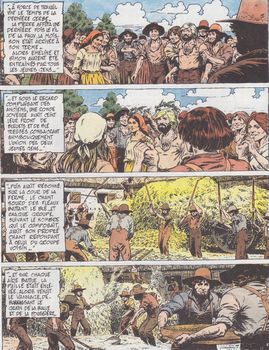 remarques: | album divisé en 3 parties 1/ les adorateurs des pierres-levées (= les cathédrales), rencontre de Simon avec les capuchons (= les pélerins), résurgence du pélérinage et des cultes mystiques 2/ les cultivateurs du blé = ode à la vie rurale et aux travailleurs de la terre, Simon rencontre son troisième et dernier amour: Emeline 3/ le mystère de la dame noire dont l'apparition artificielle est démasquée par Simon (la vierge noire = statue en bois très ancienne dans la cathédrale de Chartres) >> album de méditation et philosophie où Auclair le naturaliste mais aussi le réaliste fait dire à Simon: "il est peut'être bon de forcer la main à l'ordre des choses de temps en temps" >> très bon album |