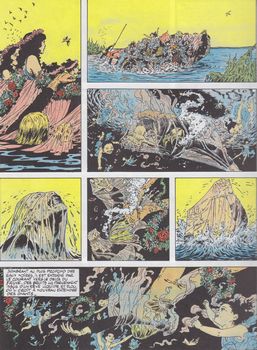 remarques: | un album où les rêves de Simon du Fleuve l'emmènent dans des rétrospectives et où Simon passe en revue son passé, passant de la collectivité à l'individu, rencontre avec d'autres personnages tel que le sang flamboyant et Bran Ruz le chemin de l'Ogam = le chemin de la vie ou de la mort |