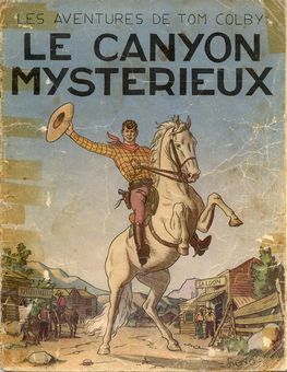 remarques: | - un tout premier récit dessiné par Cuvelier qui signe avec le pseudo Sygao et dont le scénario est une ébauche du synopsis d'Olav soi-disant élaboré par le duo Hergé/Jacobs - les aventures du cowboy Tom Colby qui doit résoudre le mystère qui règne dans le canyon de la mort >> p. 9 un drôle de pont - dans ses péripéties, Tom Colby se nouera d'amitié avec Magora, le peau-rouge qui le tirera souvent de situations dangereuses >> p. 25 Tom Colby au poteau de torture >> un album sans prétention, avec un texte banal et sans grand intérêt, un album mythique, mais avec un début de graphisme par Cuvelier qui s'affirme lentement; n.b. étrangement côté Euros 300.- au BDM, il y a toutefois une réédition plus abordable par Magic Strip en 1979 |
