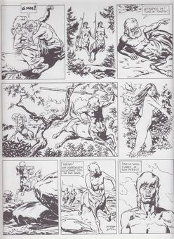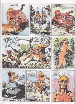 remarques: | réédition en couleur de l'album Epoxy Horus 1977 avec en supplément un carnet d'introduction à Cuvelier (petit dossier de 16 pages) 1/ préface de Jean Van Hamme - comment Van Hamme fit la connaissance de Cuvelier en 1966 et lui proposa un scénario pour un album sur la mythologie grecque intitulé Epoxy et inspiré de l'album Barbarella par Forest édité par Losfeld en 1964 - il y eu deux tirages d'Expoxy a) en bichromie publié en 1967 par Losfeld avec jaquette b) en monochrome publié par Horus en 1977 a vec ex libris Convention de Paris - en fait ce fut le premier scénario de Van Hamme qui travaillait alors pour une société chimique >> p. 4 l'origine du titre Epoxy = = revêtement chimique à base de goudron (en anglais coal tar epoxy) 2/ introduction à Cuvelier par Numa Sadoul - description de Cuvelier par Sadoul qui fut l'un des rares amis de Cuvelier, description basée en partie sur l'interview avec Cuvelier en 1973 dans le CBD no 8 - un interview difficile qui ne s'effectua pas en une fois - description physique de Cuvelier, un personnage particulier avec une "tête de breton", il était possédé par l'art jusque dans ses fibres les plus intimes - il ne se plaisait pas vraiment dans la BD qu'il dessinait pour gagner sa vie qui était d'ailleurs plus que modeste - Cuvelier avait deux passions: sa chienne Numa et la peinture, à part cela la BD pour arrondir ses fins de mois, il buvait beaucoup mais sans être alcoolique, ce qui lui valut quelques coups d'éclat en société - un super-sensuel, un grand jouisseur et un amoureux chronique, mais toujours sans le sous, souvent aidé par sa famille - ce n'était pas un raconteur d'histoires, mais un vrai créateur plastique - jusqu'à sa mort en 1978 (cancer ou tumeur du cerveau), il resta tiraillé entre la vie et le besoin, entre l'artiste et le mercenaire de la BD - dernière rencontre avec Sadoul lors de la Convention 1977 à Paris >> p. 15 le faire-part mortuaire au décès de Cuvelier (1923-1978) n.b. voir aussi l'excellent ouvrage de Goddin sur Cuvelier (les chemins du merveilleux 1984) >> sous Corentin 3/ album Epoxy en couleur - texte et commentaires >> voir album N&B 1977 - malheureusement la mise en couleur n'est pas optimale, le N&B correspondant beaucoup mieux au style de Cuvelier n.b. curieusement l'album Epoxy 1968 Losfeld n'est pas mentionné dans le CBD no 8 de 1973, on y trouve que des dessins inédits relatifs à Epoxy annexes - couverture de l'édition couleur 1997 - différence entre trois vignettes a) bichromie b) monochromie N%B c) couleur - planche extraite de l'album couleur - couverture réédition Lombard 2003 - portrait de nymphette par Cuvelier |