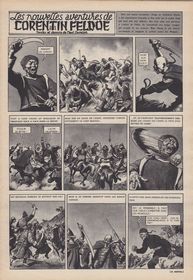 remarques: | - réédition en couleur 1979 des nouvelles aventures de Corentin - dans la première page, le récit est intitulé: les nouvelles aventures extraordinaires de Corentin - la mise en couleur de cet album ne peut toutefois en aucun cas se comparer à l'oeuvre originale en lavis N&B , ce coloriage ne correspondant plus du tout au style de Cuvelier - de plus la composition des couleurs n'est pas la meilleure et de toute façon l'album ne contient plus les 7 planches HT - texte et commentaires >> voir l'album original annexes - couverture de l'album réédition couleur - planche de Corentin dans journal Tintin belge no 44 (1948) - vignette non censurée dans Tintin belge no 44 (1948) - vignette censurée dans Tintin France no 44 (1949) - vignette édulcorée complètement dans l'album N&B 1953 |