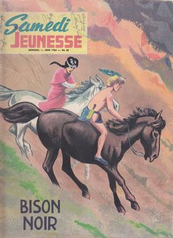 remarques: | - édition Samedi-Jeunesse, fascicule broché en N&B no 80 juin 1964 n.b. avec l'assurance gratuite en cas d'accident - reprise de Corentin chez les Peaux-Rouges sous le titre de Bison Noir, le magnanime, récit fidèle pour le graphisme N&B à l'album original de 1956, mais avec des corrections pour certaines parties du texte, exemple p. 6, case 10: ""que se passe-t-il mon petit" devient "qu'y a-t-il fiston" (texte et commentaires >> voir l'album 1956) + "rien de neuf au Far West" = petit récit humoristique sans grand intérêt |