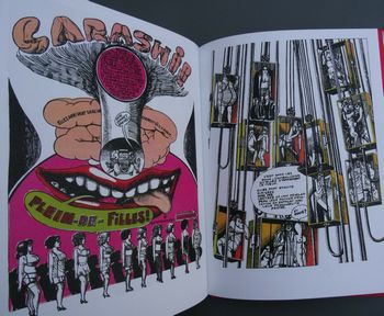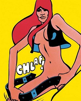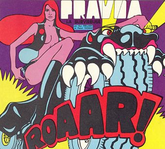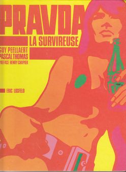 remarques: | album EO octobre 1968, couleur, 71 pages 1/ préface de Henry Chapier - Pravda est notre "inconscient collectif", sur sa moto qui se transforme parfois en panthère noire, c'est le chevalier à la quête du Graal, quête de "vérité" d'émancipation - une créature onirique qui explique la rebellion de la jeunesse (mai 1968) et symbole de la révolution sexuelle - Pravda est inspirée de la chanteuse Françoise Hardy, bande dessinée parue en 1967 dans le mensuel "Hara Kiri" et qui s'inscrit dans le prolongement des aventures de Jodelle (1966) 2/ Pravda la survireuse - avec sa moto, Pravda devient cheffe de bande, son arme favorite: sa ceinture d'airain >> p. 18 le cimetière des voitures >> p. 22 Pravda sur sa moto-panthère - puis c'est une suite de bagarres sur un flipper et dans les supermarchés (superette, critique de la société de consommation) >> p. 30 une Pravda qui ne recule devant rien (avec une bouteille ébréchée de tomato ketchup pour se défendre) - ensuite c'est un combat contre la cavalerie US (les tuniques bleues et les tuniques vertes) >> p. 39 le radeau-château de la Méduse - rencontre avec le Beau >> p. 51 combat aérien sous la lune "Coca Cola" - enfin Pravda se débarrasse de son Beau, Beauf et Bellâtre, elle reconquiert sa liberté >> un air nouveau dans les bulles, une débauche de couleurs et d'onomatopées, mais sans scénario significatif - une bande dessinée expérimentale, basée sur le POP-Art, la culture rock et l'essor de l'individualisme - beaucoup influençé par Andy Warhol et ses boites de soupe au poulet! >> de la BD survireuse et sulfureuse mais rien d'extraordinaire n.b. un album néanmoins fort côté au BDM = Euros 100.- annexes - couverture de l'album 1968 - deux illustrations tirées de l'album |