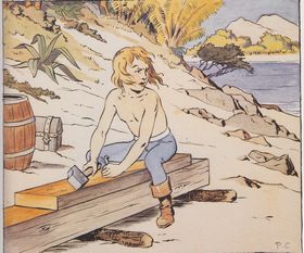 remarques: | - titre complet: Corentin et les chemins du merveilleux, Paul Cuvelier et la bande dessinée ou les angoisses et les états d'âme d'un dessinateur BD avec un témoignage d'Hergé (qui en 1945 a vu de suite en Cuvelier un dessinateur doué) - Cuvelier (1923-1978) a excellé dans l'art du dessin à l'état pur, notamment sur les corps d'adolescents, de femmes et de chevaux, il ne faisait de la bande dessinée que pour des raisons financières que son art n'arrivait pas à lui fournir 1/ la genèse d'un héros (1941-1945) - Paul Cuvelier est pris dans l'exode vers Toulouse avec ses parents, dont son père Charles Cuvelier, lors de l'avance allemande en 1940 - il a alors déjà la passion de la peinture, son ambition: la beauté idéale - le pouvoir de l'imagination (et du merveilleux) se développe déjà inspiré de Gustave Doré, de Daniel Defoë et de Paul Féval (son roman Corentin Quimper) - Tintin et Milou dans le Petit Vingtième auront aussi contribué à fasciner Paul Cuvelier ainsi que Alex Raymond dans la bd américaine - premiers travaux dans le Journal de Tintin avec Hergé et Jacobs qui lui fournissent un petit scénario intitulé le canyon mystérieux (avec le shériff Tom Colby) sorti en cahier broché (1947) - puis ce seront les aventures de Corentin (que Cuvelier avait déjà imaginé à l'âge de 13 ans) - remarque d'Hergé: Cuvelier voulait être un artiste tel Michel-Ange, ah! s'il avait simplement voulu être Cuvelier (Cuvelier était d'aiileurs un grand admirateur d'Hergé) 2/ le cycle Corentin a) les chemins enthousiastes (1946-1950) - les extraordinaires aventures de Corentin 1946/1947 album au lavis avec 7 HT couleur en 1950 - les nouvelles aventures de Corentin 1947/1949 album au lavis avec HT couleur 1953 - Corentin chez les peaux-rouges 1949/1950 album 50% couleur, 50% lavis mais sans HT autres récits publiés dans le Journal Tintin: - à la mer (journal Tintin belge uniquement) - l'invention du professeur Hyx et de nombreux contes et couvertures du Journal Tintin - le contexte de Corentin: féérie de l'imagination, magie de l'exotisme et la joyeuse sensualité des situations bien que le rythme ne soit pas soutenu de façon ordonné, mais l'utilisation du lavis au lieu de la couleur correspond beaucoup mieux au style de Cuvelier - les nouvelles aventures sont plus cruelles, plus rudes et plus tristes que les extraordinaires aventures sans la participation de Moloch et Belzébuth, Kim restant le témoin relais et l'écho de Corentin, mais dans cette 2ème aventure, le prince Song prend quelque peu la place de Kim >> p. 29 l'histoire de la vignette qui a été subséquemment édulcorée depuis la parution dans Tintin belge no 44 du 28.10.1948 >> pour le développement de cette vignette, voir sur ce site la réédition couleur des nouvelles aventures de Corentin - avec Corentin chez les peaux-rouges, Cuvelier est forçé de faire de la BD western, mais en outre il faut aussi résoudre un problème de temps et d'espace avec Corentin (Corentin I devient Corentin III, voir l'histoire de Corentin dans CBD 8) - toutefois Cuvelier ne continuera pas cette série western malgré la notion de nudité avec les chevaux et les indiens, ce n'était plus vraiment le genre merveilleux et Cuvelier manque d'espace pour son imagination, le cadre western étant trop réaliste - de plus Corentin III reste trop dans les jupes de sa mère et n'a plus la stature de Corentin I >> p. 31 et 32 deux jolies couvertures parues dans le journal Tintin belge (no 17 28.4.1949 et no 6 9.2.1950) - nombreuses couvertures de Cuvelier parues dans le Journal Tintin dont les meilleures: no 18 (1.5.1947), no 42 (16.10.1947), no 3 (15.1.1948), no 46 (11.11.1948) no 17 (28.4.1949) et No 6 (9.2.1950) b) les chemins douloureux (1951-1960) - voyage aux USA en 1950, après avoir coupé les ponts avec les éditions Lombard, Cuvelier revient en 1956 à la bande dessinée avec le poignard magique - cela lui causera quelques difficultées pour reprendre la série Corentin, notamment dû à l'incohérence du récit de la scénariste peu expérimentée Gine Victor, - période de désarroi pour Cuvelier, la fin du récit sera repris par Greg >> le poignard magique 1958/1960, album couleur 1963 >> p. 40 la photo de l'équipe du Journal Tintin en 1953 c) les chemins résignés 1961-1973 travail avec Greg, création de nouveaux personnages: - chevalier Ardan des sables (flamme d'argent) 1960/1965 - Line 1962/1965 (genre polar) - Wapi 1962 (un peu retour au western) - Cuvelier n'intervenait jamais dans le scénario, il ne désirait que dessiner - création avec la scénariste Acar de Corentin et le signe du cobra en 1967 - un assez bon album de Cuvelier qui accorde au décor (documentation sur les temples et autres monuments hindous) un intérêt inhabituel, mais l'esprit de Cuvelier pour Corentin I n'est plus très présent - Cuvelier cherche alors à créer un art BD pour un public adulte et non plus enfantin - ébauche d'Epoxy avec le scénariste Jean Van Hamme et l'éditeur Losfeld qui consacre l'oeuvre de Cuvelier en 1968 >> p. 75 jolie planche-témoin sur Epoxy >> p. 76 portrait de Corentin Feldoë - création avec Van Hamme de Corentin et le prince des sables (1968/1969) et quelque peu retour dans le féérique et le mystérieux avec Zaïla (remplacante de Sa-Skya) en tant que femme qui va peser dans la destinée de Corentin - première collaboration avec Jacques Martin pour un scénario de Corentin mais tentative qui n'aboutira pas - 4 ans plus tard en 1973, parait le dernier récit de Corentin au royaume des eaux noires, cet album a dû plaire à Cuvelier de part les formes humaines, notamment celles de Zaïla et de Corentin - Corentin est maintenant devenu adulte et est confronté à l'amour et à la féminité d) pages 59 à 64 épisode inédit de Wapi en 6 planches 3/Cuvelier et le destin des Feldoë - une 3ème épisode "les 3 perles de Sa-Skya" proposé par Van Hamme ne sera jamais dessiné p